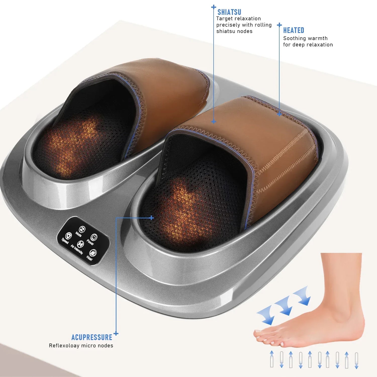 - Shiatsu Kneading Rollers: Provide deep, professional-style massage to soothe muscle tension.