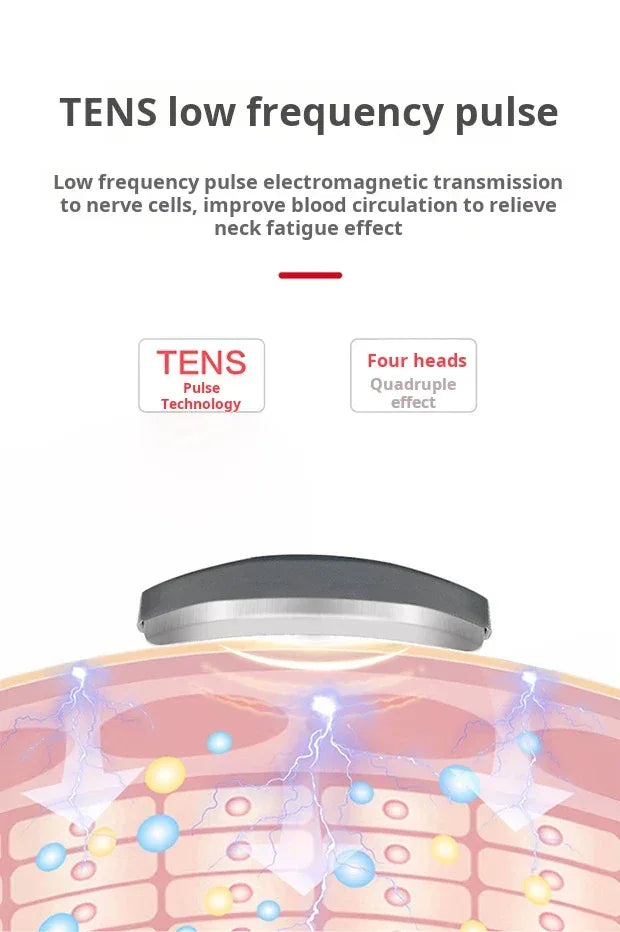 Relieve neck and shoulder tension effortlessly with this advanced electric pulse massager featuring 4 kneading heads and soothing heat therapy at 107°F (42°C). Designed to mimic human touch, it offers 6 massage modes including acupuncture, finger pressing, and hammering, paired with 9 adjustable intensity levels to customize your comfort. Portable and rechargeable via USB, its 1000mAh battery lasts up to 4 days with just 15 minutes of daily use. Intelligent voice prompts make operating this ABS-crafted massager simple and safe, while the 15-minute auto shut-off prevents overuse. Ideal for anyone seeking quick pain relief and relaxation, it’s the perfect gift to ease stiffness and improve your cervical health. Elevate your self-care routine today.