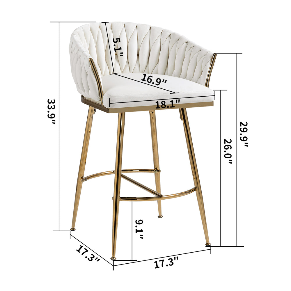Bring a touch of modern sophistication and unmatched comfort to your kitchen island or counter with these 26-inch velvet counter height bar stools. Upholstered in soft, skin-friendly beige velvet, each stool features plush high-rebound foam cushions that cradle you in comfort, perfect for long meals and casual gatherings. The stylish hand-wave back design adds a sleek, contemporary flair while providing excellent lumbar support. Crafted with adjustable metal legs and a golden chromed base and footrest, these stools offer sturdy support and customizable height to suit your space. Their breathable velvet fabric ensures warmth and softness, making every seating experience feel cozy and inviting. Easy to assemble and versatile for kitchens, bars, or vanity areas, these stools elevate your seating with both flair and function. Upgrade your home seating today and enjoy comfort that truly stands out.
