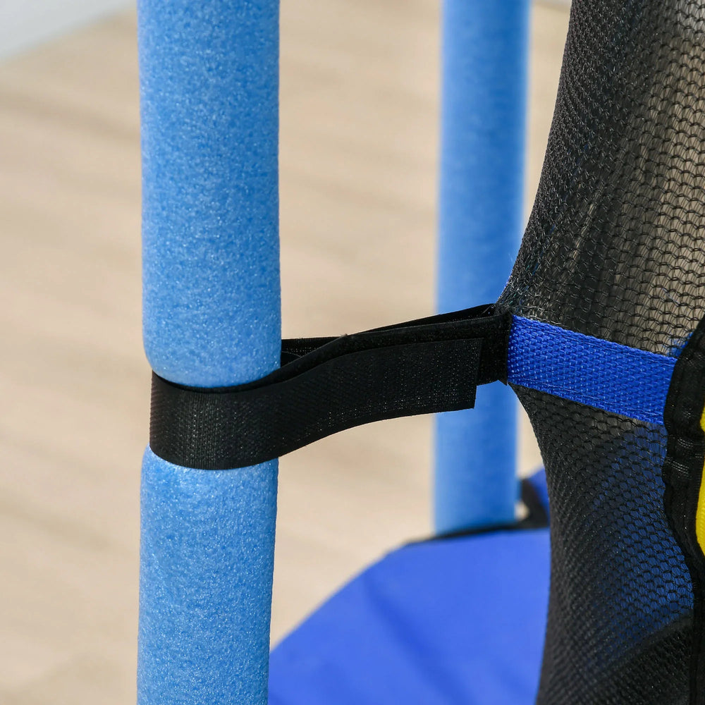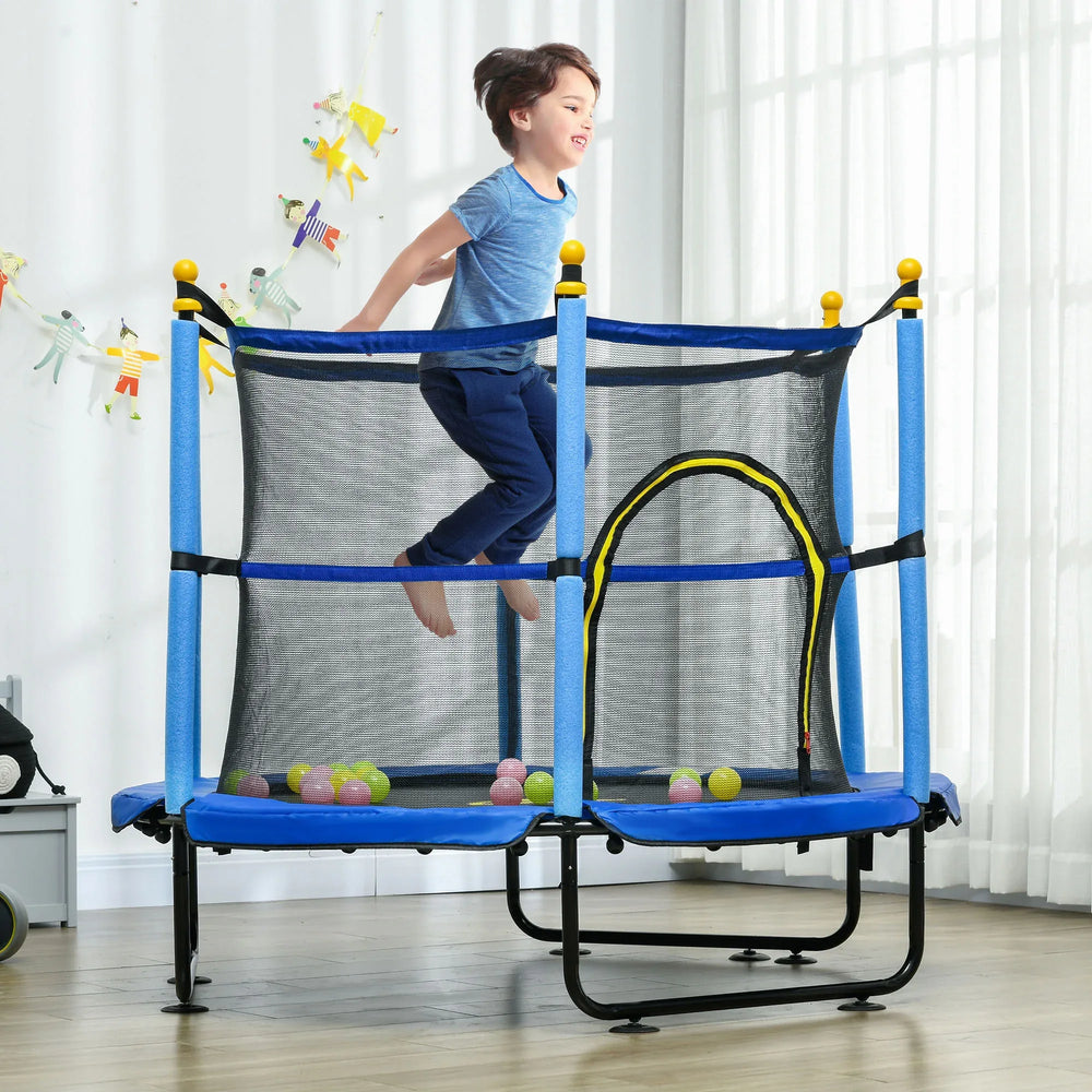 Encourage healthy play and joyful energy with the Qaba 4.6' Trampoline, designed specifically for kids ages 3 to 10. Built with a sturdy steel frame and a secure 360-degree enclosure net, this toddler trampoline offers a safe, enclosed space where children can jump, bounce, and explore with confidence. The spacious 55-inch diameter jumping surface provides plenty of room for various jumping styles, promoting balance, coordination, and cardiovascular health. With a soft elastic rope supporting the jumping mat, it cushions impact to protect little ankles and knees. The added ball pit feature with 20 colorful balls creates an engaging, multi-sensory play environment for indoor or outdoor fun all year round. Easy assembly and a weight capacity of 110 pounds (50 kg) make this trampoline an ideal addition to any active kid’s play space. Elevate your child’s playtime today with a trampoline that combines safety, stability, and endless fun.