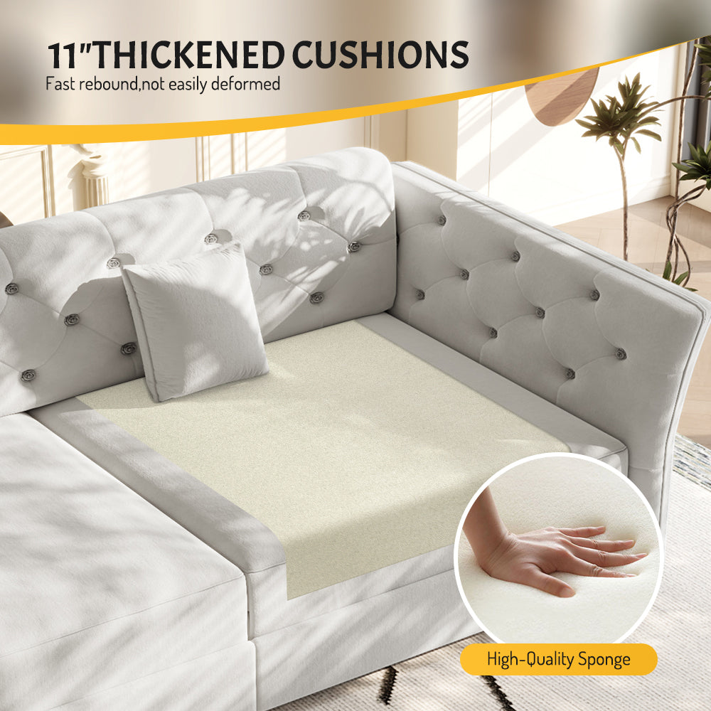 Convertible Velvet 3-Seater Sofa Bed With Flower Tufting