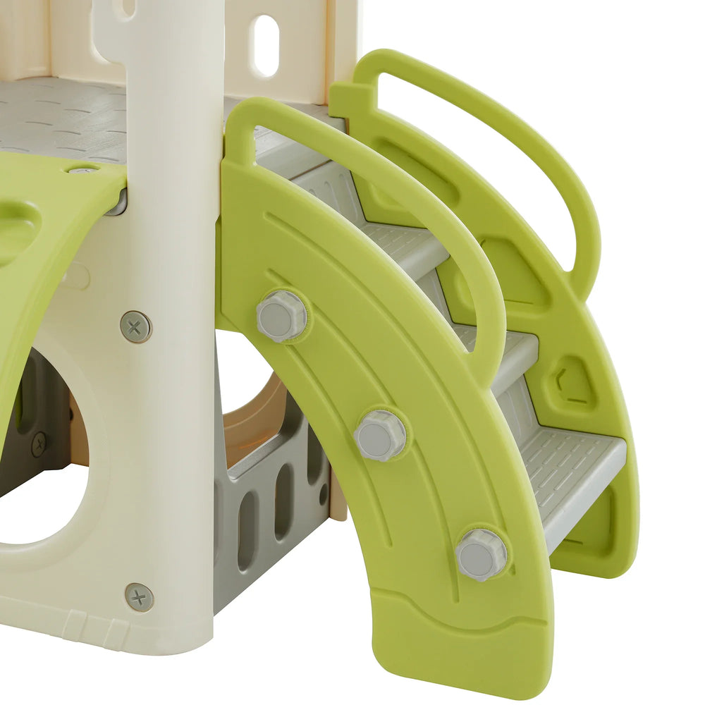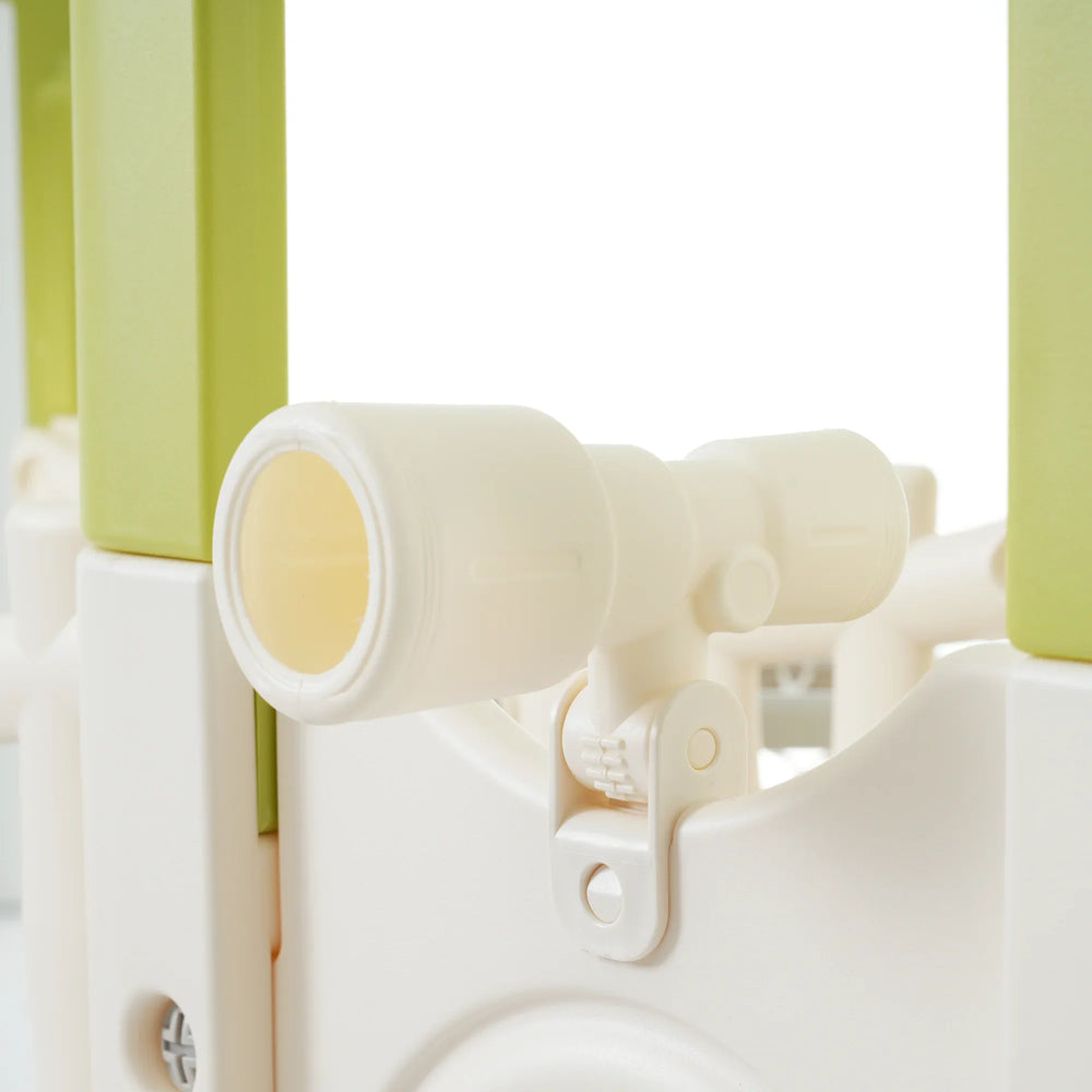 - 8-in-1 Play Components: Includes slide, climbing frame, crawling tunnel, ladder, basketball hoop, 2 telescopes, bridge aisle, and toy storage spaces.