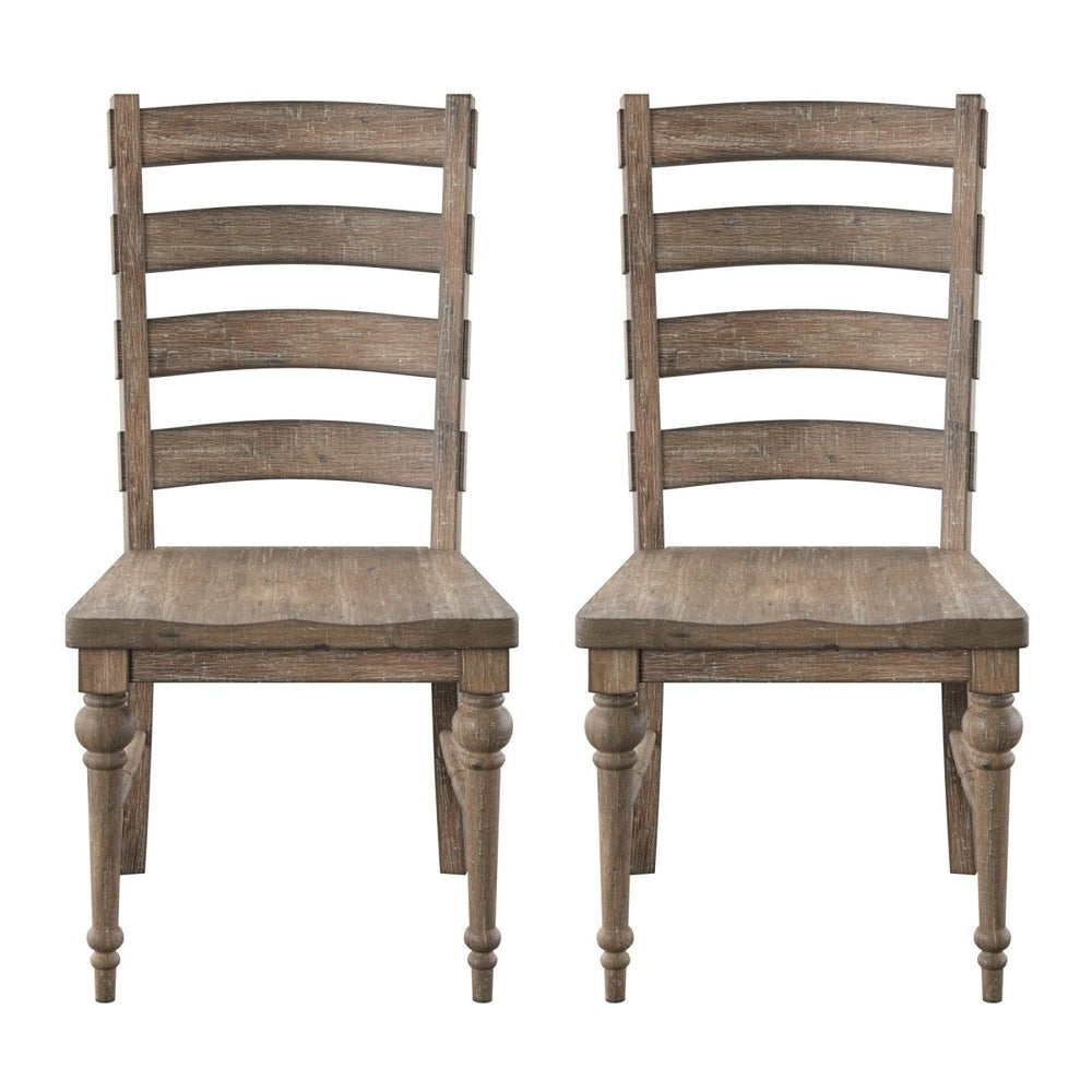 Set of 2 Taupe Solid Wood Ladderback Dining Chairs