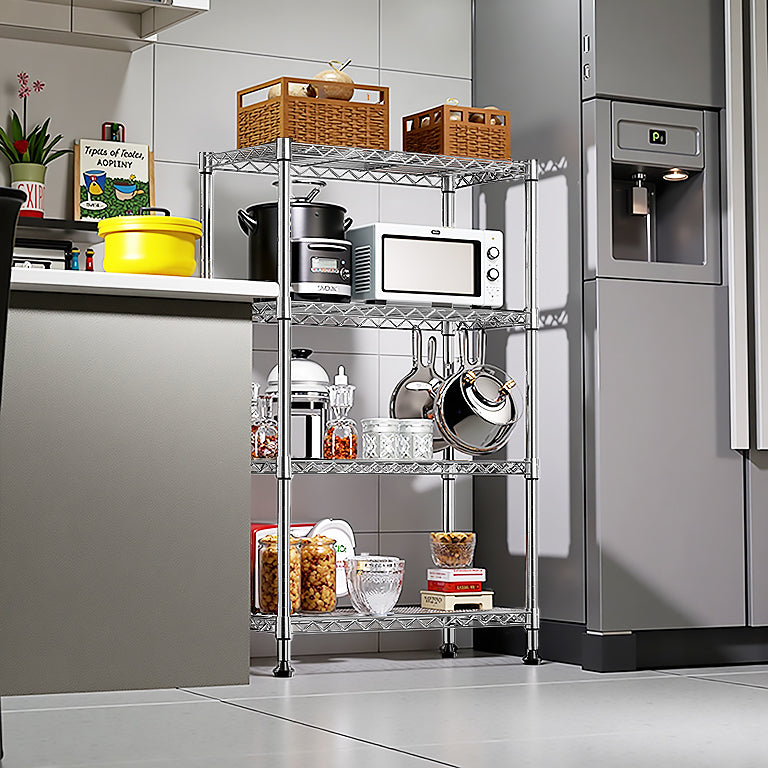 4-Tier Adjustable Carbon Steel Storage Shelving Unit Chrome