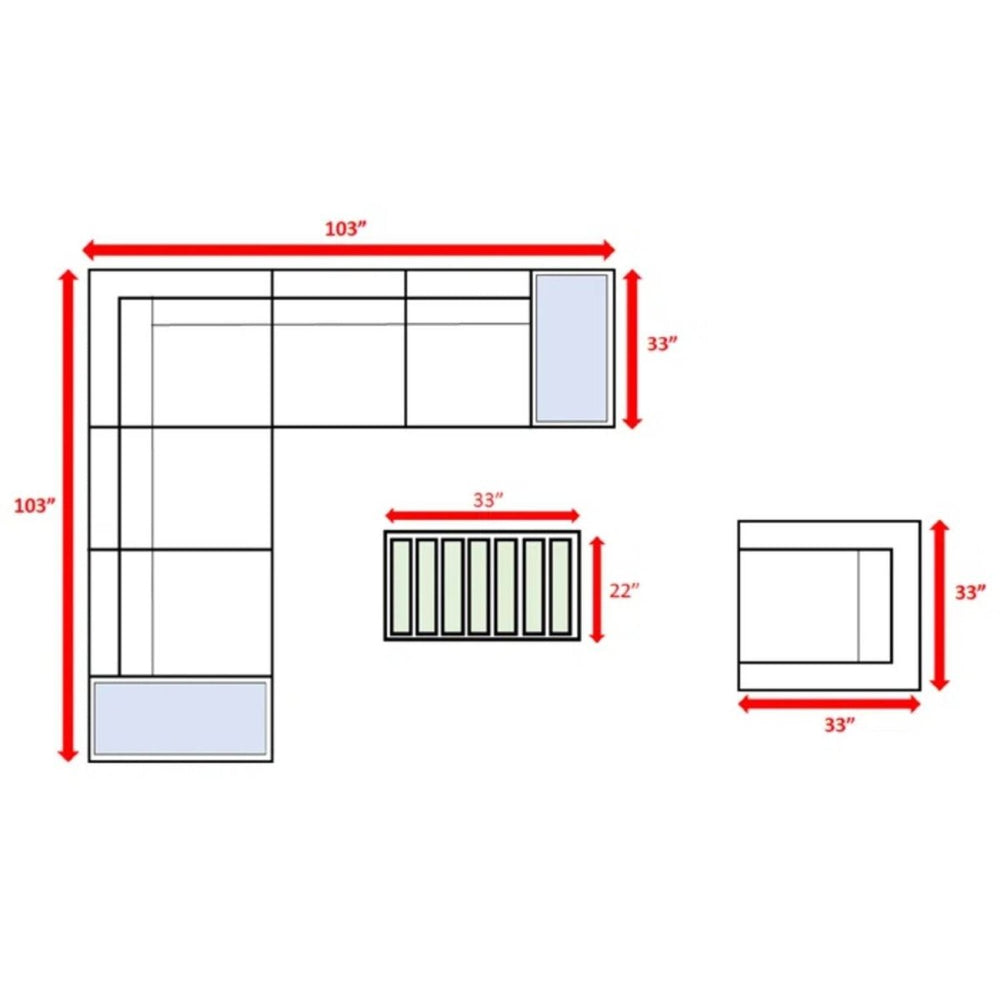- 9-Piece Outdoor Seating Set: Includes U-shaped sectional, lounge chair, and 3 multifunctional tables.