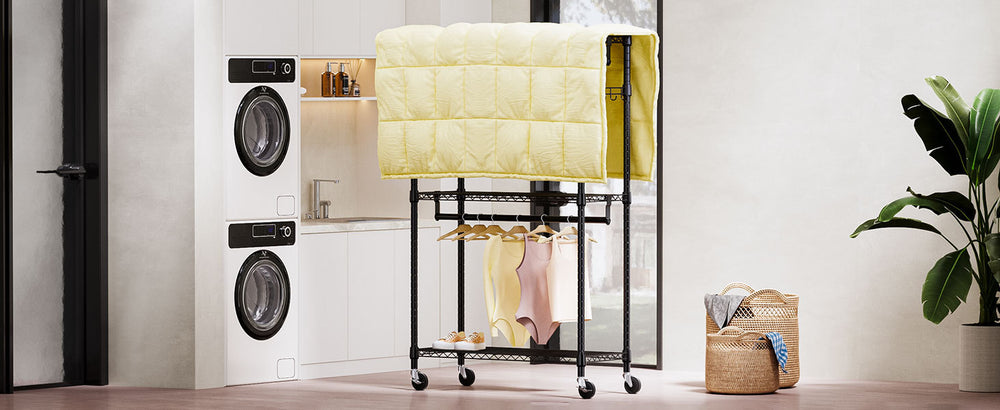 • Lockable 360° Wheels: Easily move the rack and secure it in place as needed.