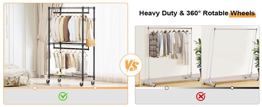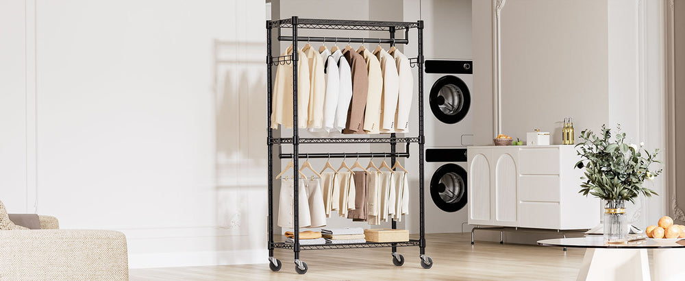 Organize Your Wardrobe Effortlessly with the Heavy Duty Rolling Garment Rack