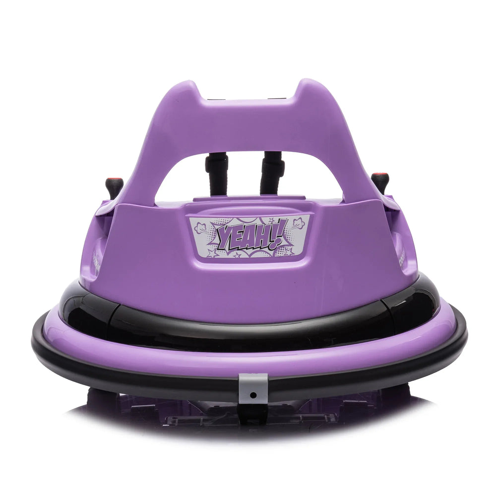 Give your child an exciting and safe driving adventure with this 12V electric ride-on bumper car designed for kids aged 1.5 to 5 years. Crafted from durable polyethylene in vibrant purple, this compact car features a dual-drive system with omni-directional wheels that ensure smooth, agile movement and full 360-degree spins for endless fun. The integrated console under the seat offers easy control with one-touch start, Bluetooth music, LED lights, and battery level display. Safety is paramount with a five-point safety belt and full-circle anti-collision padding on the vehicle body. Parents can take control remotely using the 2.4G remote control system, offering peace of mind during playtime. With up to 1 hour of continuous use on a single charge and compliance with ASTM CPC safety standards, this ride-on car combines fun, performance, and security perfectly. Elevate your child’s playtime today.