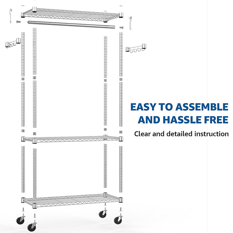 • Three-tier garment rack supports up to 750 pounds weight capacity