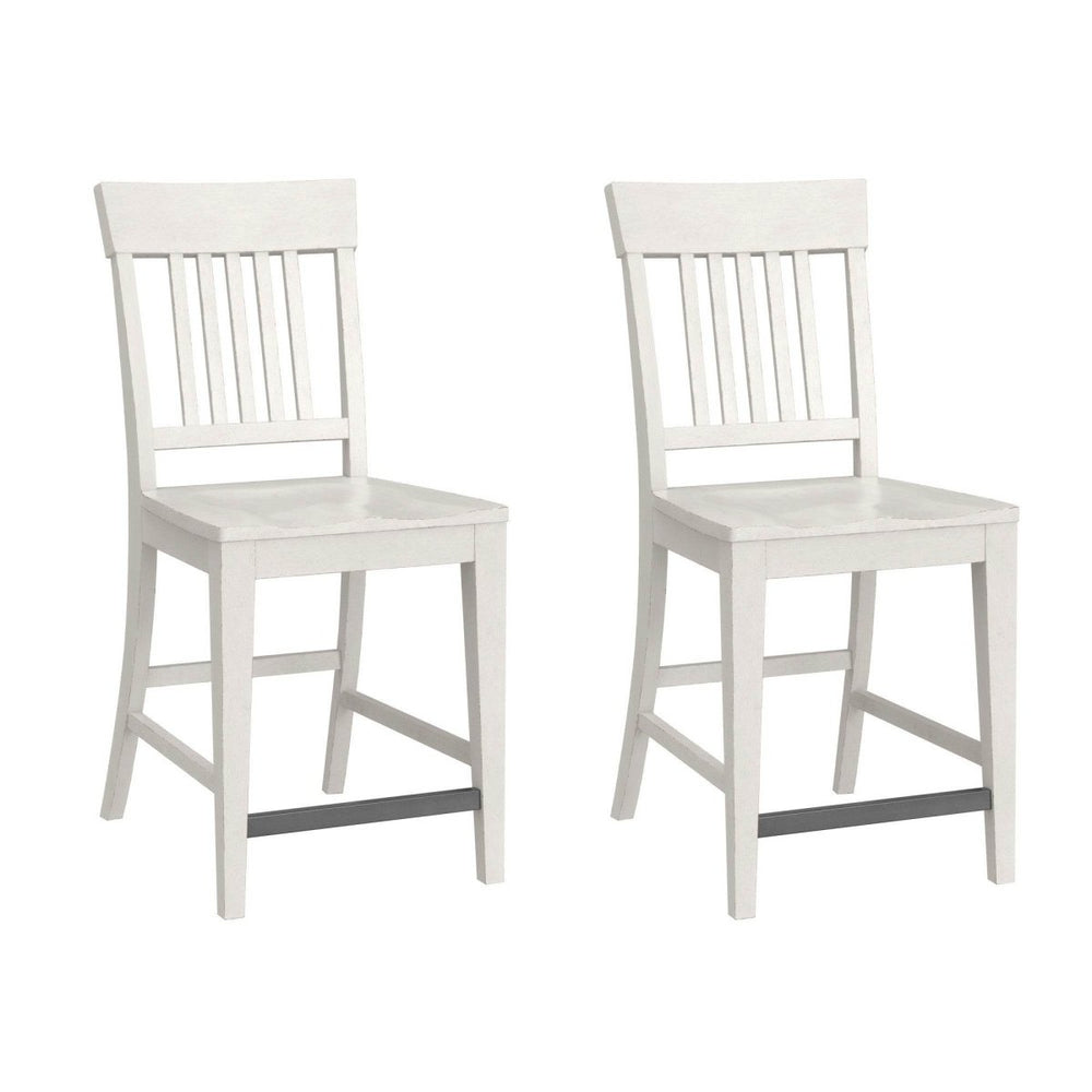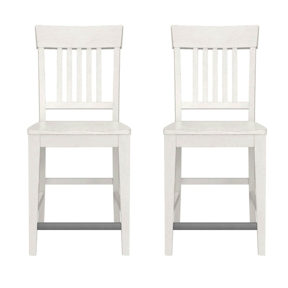Upgrade your kitchen or breakfast bar with this set of two white slat back counter stools, thoughtfully crafted from solid wood for lasting durability. Their classic farmhouse design and weathered white finish bring warmth and character to any space, seamlessly blending with rustic, coastal, or modern farmhouse décor. At 41.75 inches tall, these stools provide comfortable seating while adding a stylish touch. Easy to assemble and care for, they’re perfect for daily use in busy homes. Whether for casual meals or lively gatherings, elevate your seating area with functional beauty that stands the test of time. Transform your kitchen experience and add inviting charm today.