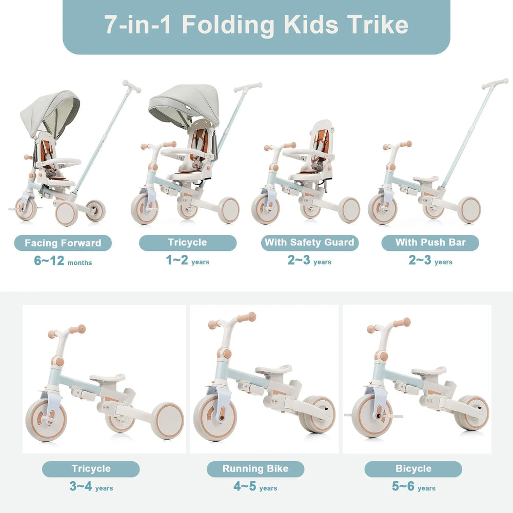 7-in-1 Multifunctional Foldable Baby Tricycle With Canopy