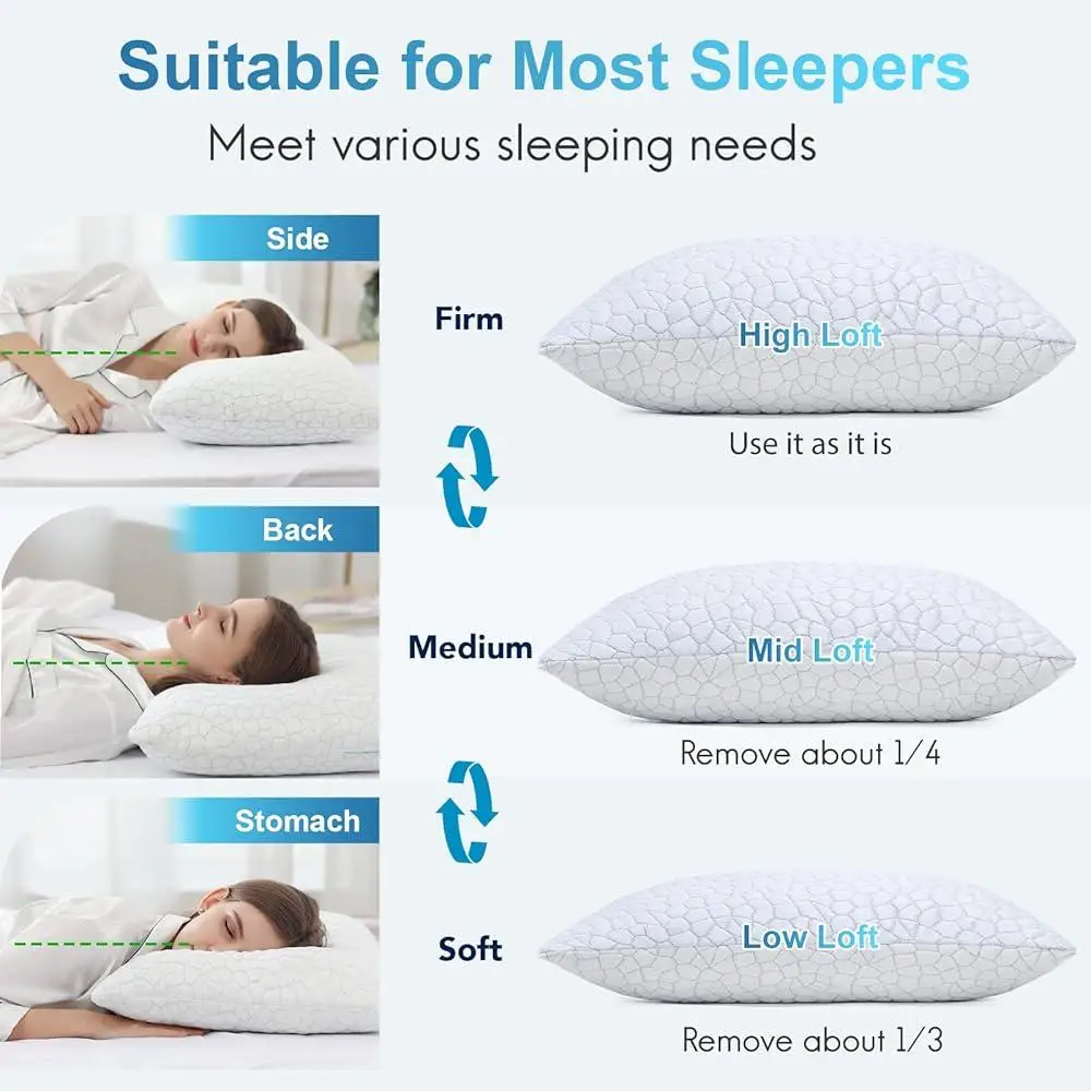 QUTOOL cooling shredded memory foam pillows ensure breathable comfort for hot sleepers with adjustable loft for personalized support. Ideal for side, back, and stomach sleepers, these pillows help reduce night sweats. Refresh your sleep—shop now!
