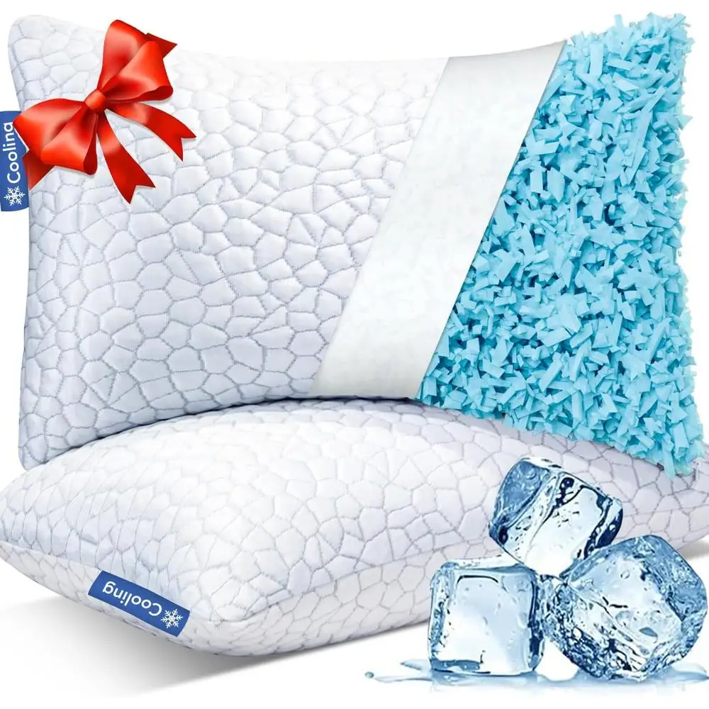 Cooling Shredded Memory Foam Pillows Queen Size 2 Pack Adjustable Loft Breathable Sleep Solution Hot Sleepers