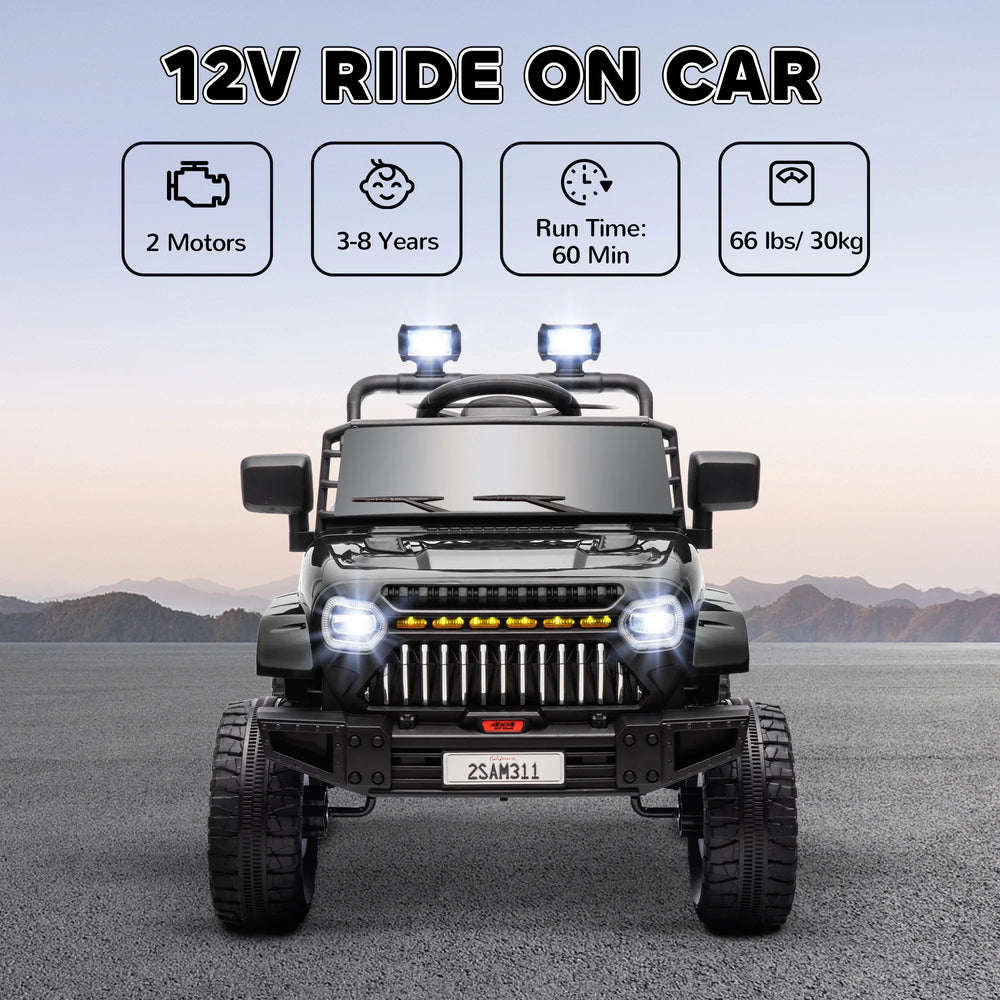 Let your little ones embark on exciting journeys with the Qaba 12V Ride On Truck, a battery-powered electric car designed for kids who love outdoor fun. Featuring dual motors and a large-capacity battery, this ride-on vehicle delivers up to 60 minutes of continuous playtime. Its four spring-loaded suspension wheels provide a smooth and safe ride over various terrains such as cement and gravel. Parents can easily control the car using the included remote, while kids enjoy independent driving with three adjustable speeds ranging from 1.9 to 3.1 mph. Enhancing the immersive experience are LED headlights, a realistic horn, and built-in USB music connectivity to keep the fun going. Compact yet sturdy, this black plastic ride-on truck measures 37.4 inches (95 cm) long, 24.6 inches (62 cm) wide, and 25.6 inches (65 cm) high, supporting up to 66 lbs. Ignite your child’s imagination and outdoor playtime – get the Qaba ride-on truck today!