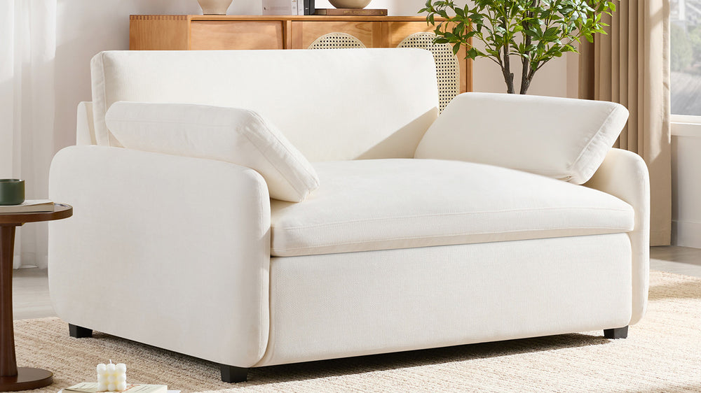 - Premium Chenille Upholstery: Soft, creamy texture adds sophistication and comfort.