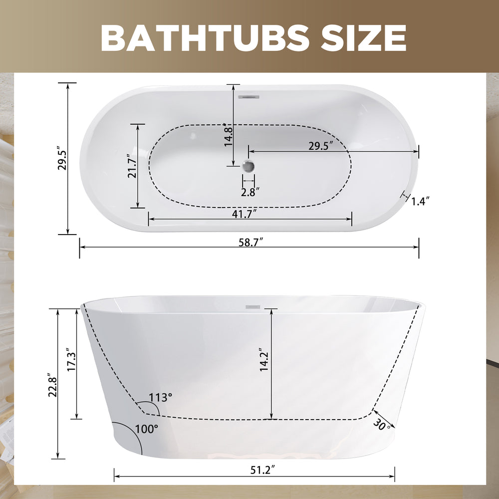 Experience Spa-Like Relaxation with Our 59-Inch Acrylic Freestanding Soaking Tub
