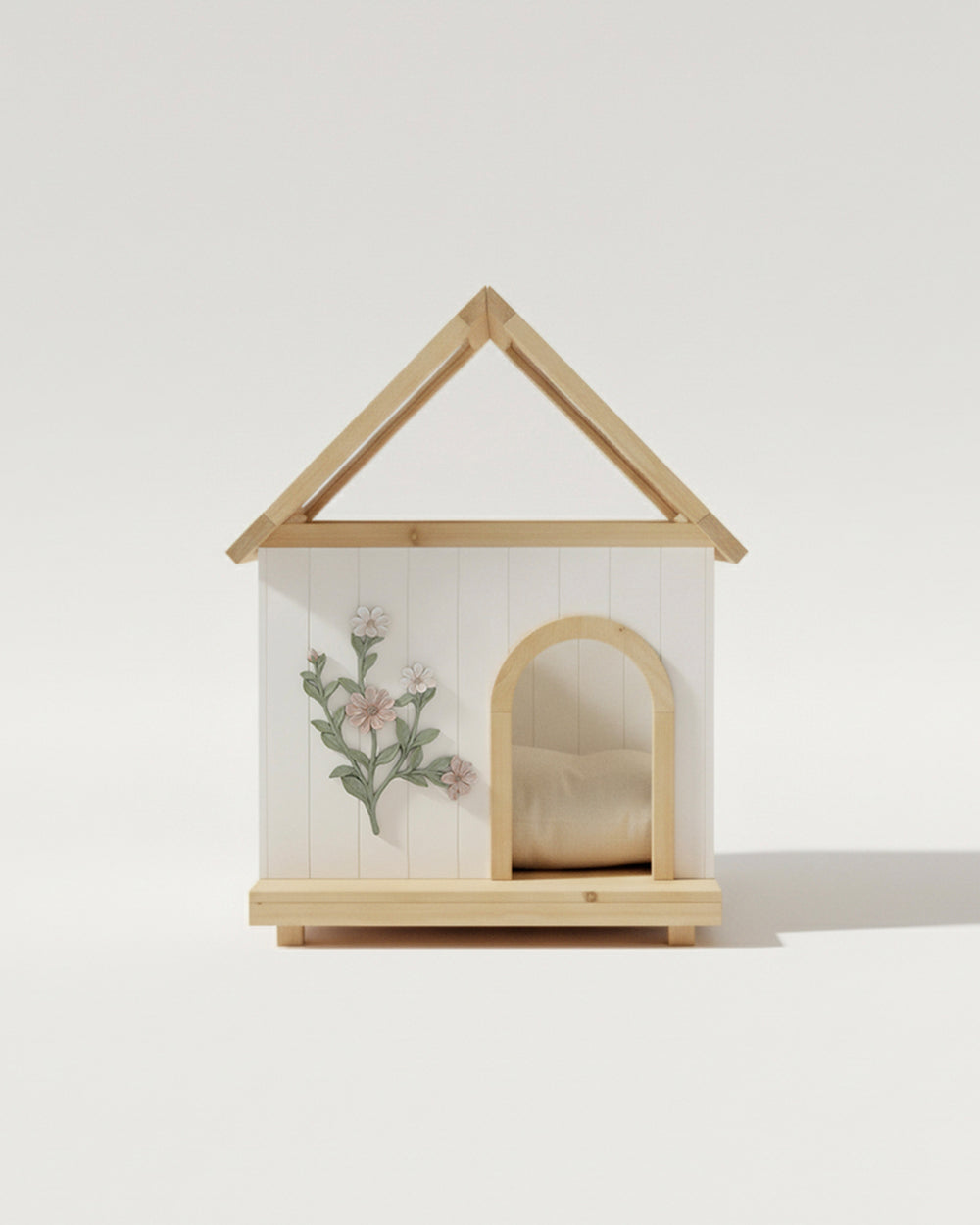 Give your small dog or cat a stylish and protective sanctuary with this contemporary pet house featuring a crystal-clear acrylic roof that invites natural sunlight while shielding from wind and rain. Crafted from FSC-certified cedar wood known for its natural warmth and antimicrobial qualities, it offers lasting comfort and durability. The delicately carved floral front panel adds an elegant touch that blends beautifully with any indoor space. Spacious and airy, this shelter measures approximately 27 inches long, 22 inches wide, and 32 inches high, providing ample room for your pet to stretch and relax. Finished with eco-friendly, water-based matte coatings, it ensures a safe environment for pets and families. Elevate your pet’s lounging experience with this unique indoor shelter today.