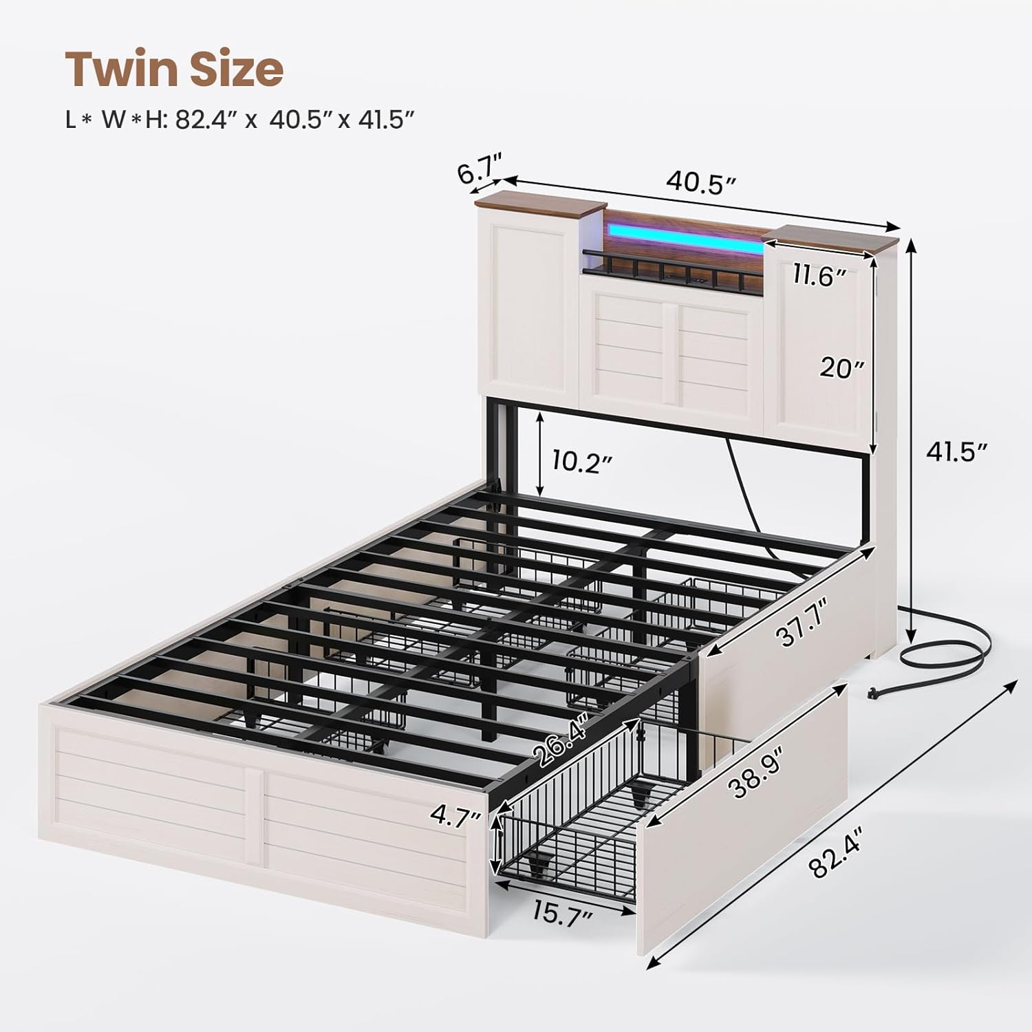 【Easy Assembly & Noise-Free】Designed for stress-free setup, this twin bed frame with storage arrives with pre-drilled holes, labeled parts, and a step-by-step visual guide. The reinforced wooden bed frame is secured with anti-shake bolts and padded with eva sponge, eliminating noise and rattles. The heavy duty twin bed frame with no box spring needed provide loading capacity up to 800lbs, and stays sturdy and durable through years of use.