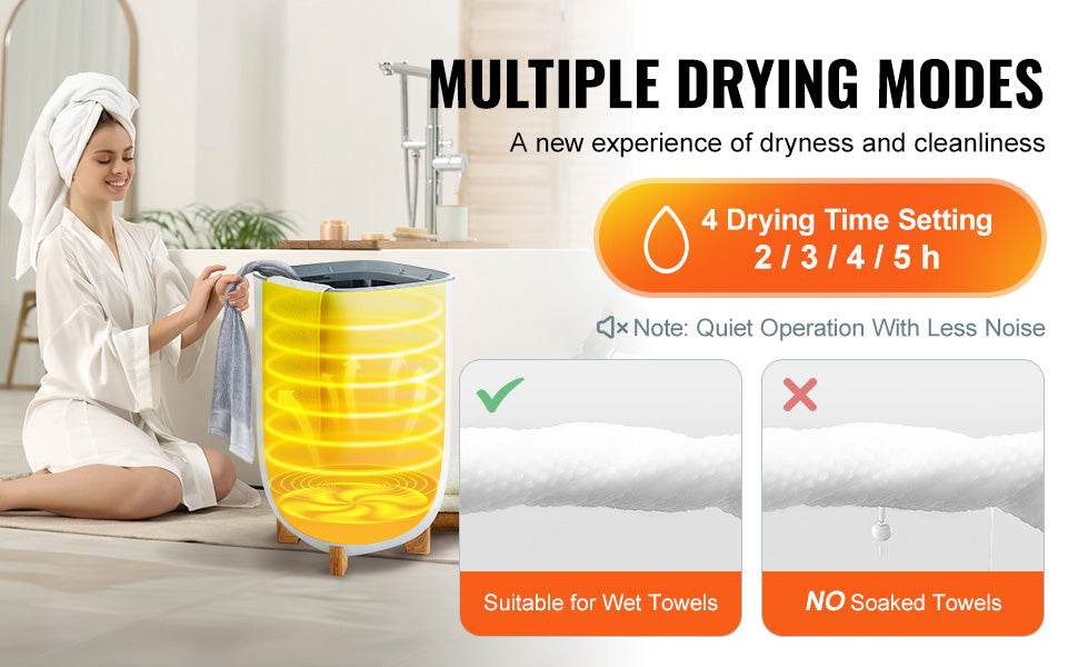 Powerful Drying: It includes 4 timing drying functions (2/3/4/5 hours), suitable not only for towels but also for drying damp clothing, ensuring every use provides a dry and clean experience.