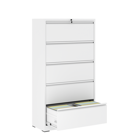 Modern 5-Drawer Steel Lateral Filing Cabinet With Lock