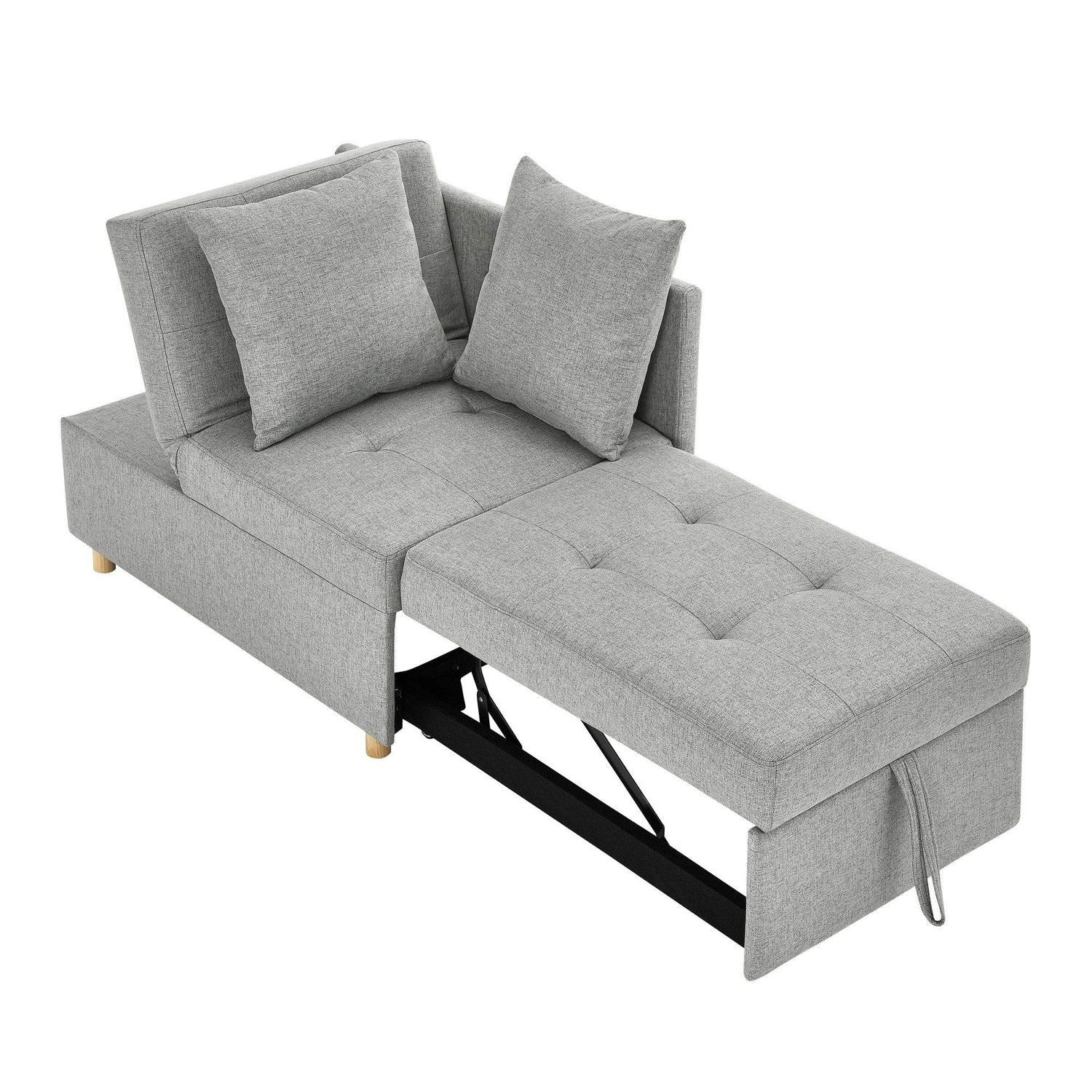 Convertible Linen Sleeper Sofa Chair With Adjustable Backrest