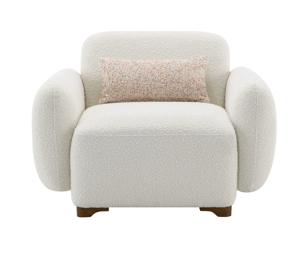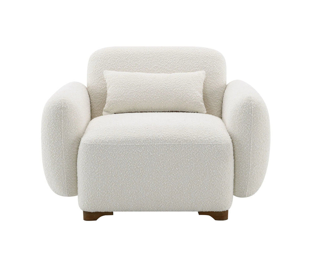 Beige Boucle Accent Chair With Toss Pillow