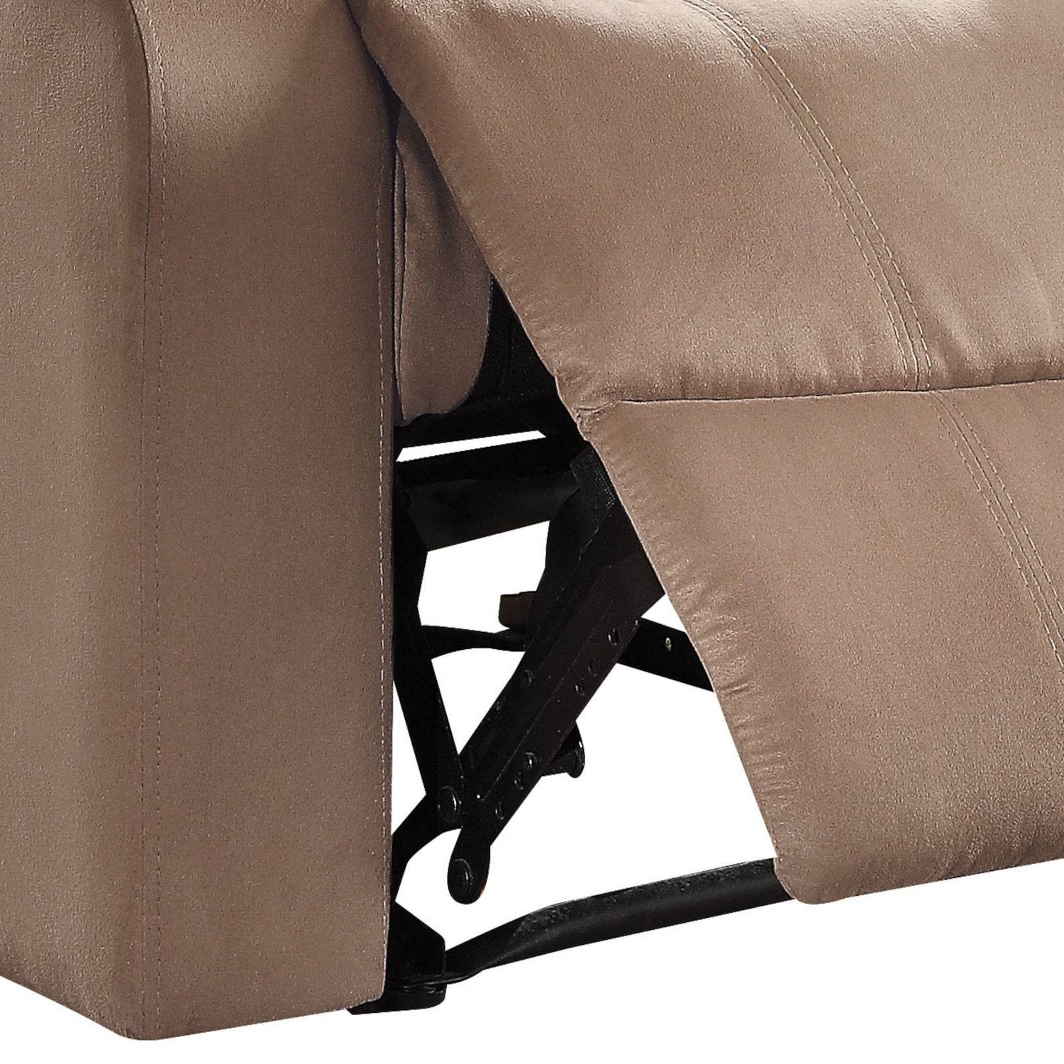 Upgrade your living space with this elegant brown recliner designed for ultimate relaxation. Crafted with a sturdy metal frame and wrapped in soft, breathable microfiber fabric, this recliner offers a cozy retreat after a long day. The manual handle allows for smooth reclining, while memory foam seat cushions and a tight back provide exceptional support and comfort. Pillow top arms add extra plushness for your arms to rest, enhancing your comfort during extended use. Compact yet roomy at 41 inches high, 36 inches wide, and 36 inches deep, it fits perfectly in primary living spaces. Elevate your relaxation today with this stylish and functional recliner.
