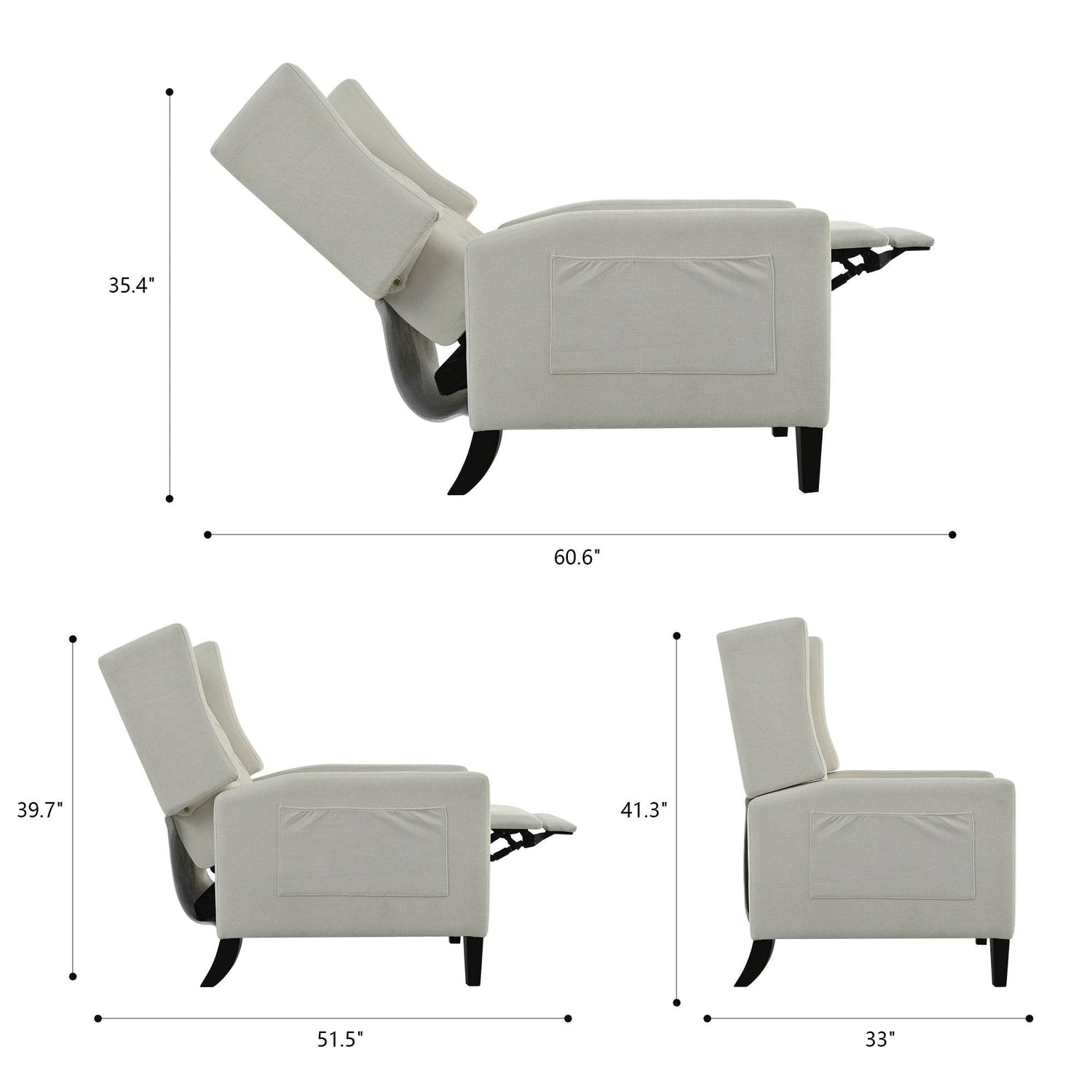 Mid-Century Fabric Pushback Recliner Chair With USB