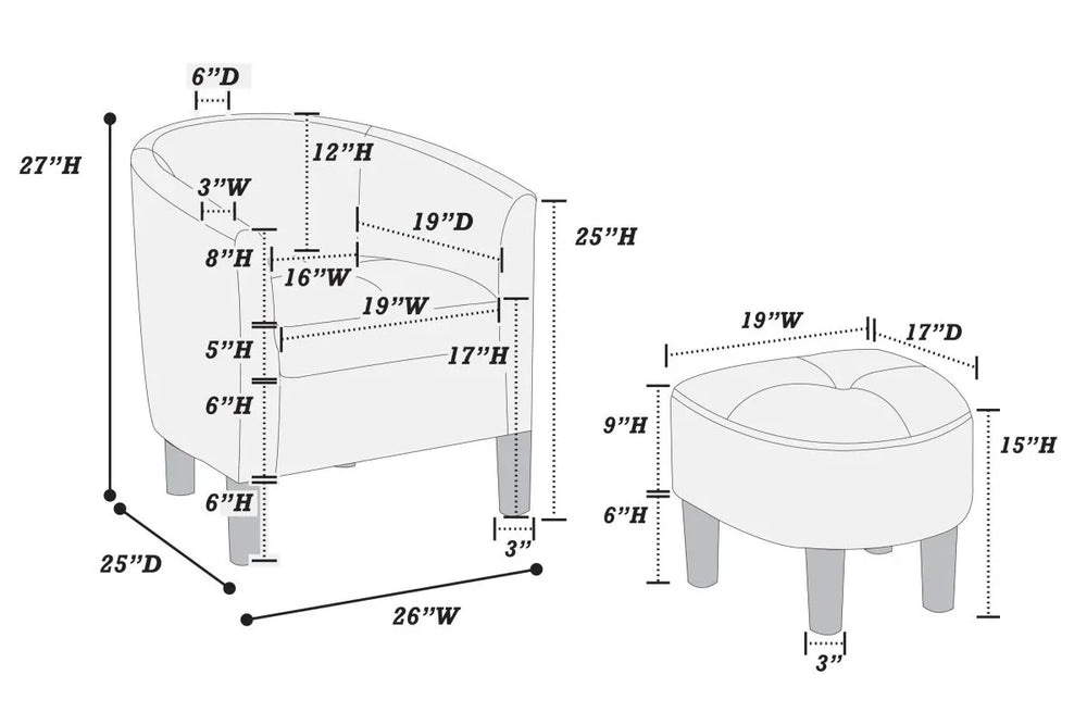Ottoman Dimensions: Compact design complements chair size