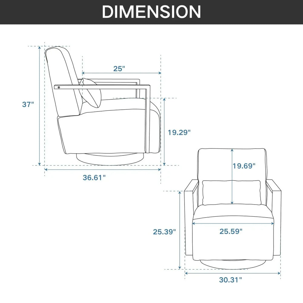 Enhance your living space with this modern swivel accent chair, crafted for ultimate comfort and style. Upholstered in a soft and durable beige linen blend, the chair invites you to relax in its wide, foam-filled seat with sinuous spring construction for excellent support. Its 360-degree swivel function adds flexibility, making it perfect for reading, lounging, or casual conversation in your bedroom, office, living room, nursery, or hotel lounge. The solid wood armrests and weathered rubberwood base offer a timeless touch of craftsmanship and durability. Perfectly sized at 30.3 inches wide, 36.6 inches deep, and 37 inches high, this chair easily fits various room layouts. Included is a plush polyester fiber pillow for extra coziness. Elevate your seating experience and bring a classic yet contemporary accent to your home today.