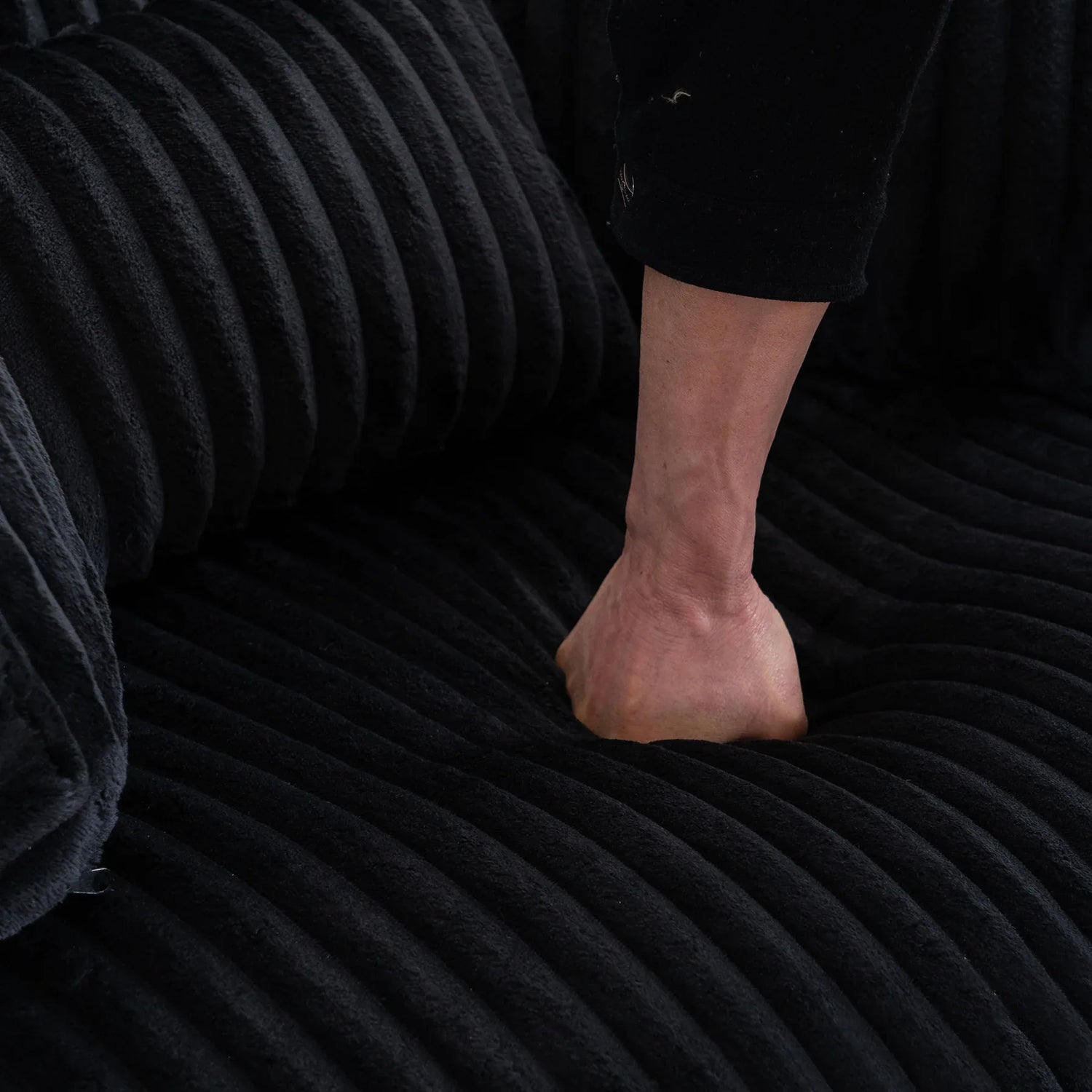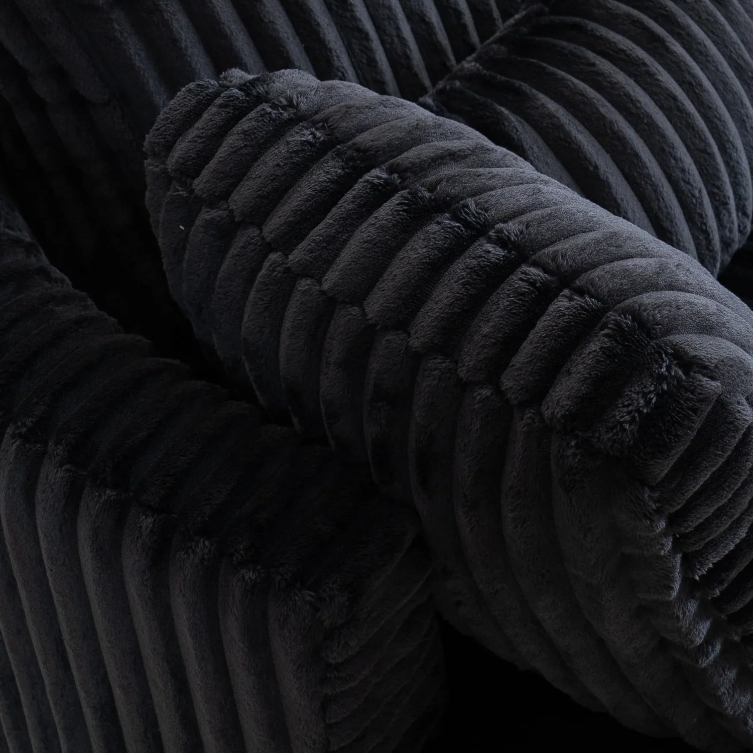 • Plush Black Corduroy Upholstery: Soft, inviting texture enhances comfort and style.