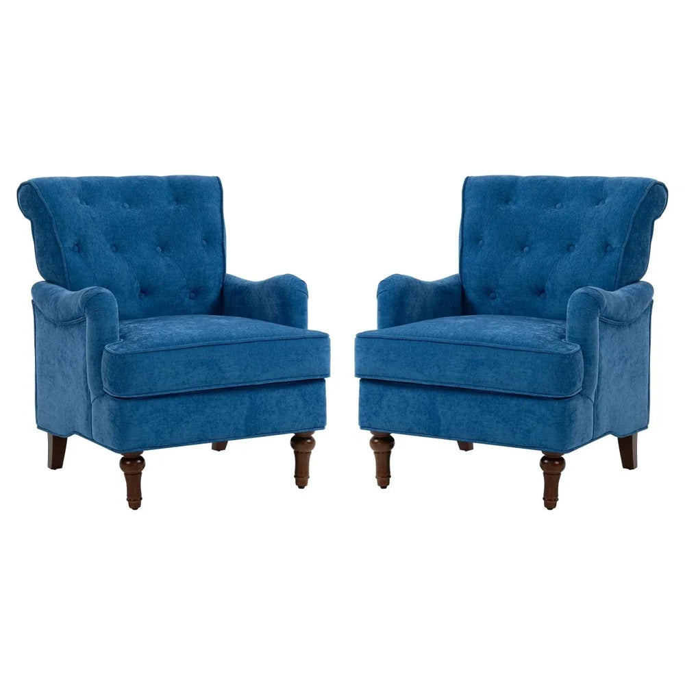 Bring style and comfort to your living space with this light blue chenille accent chair. Upholstered in soft, high-quality polyester fabric, it offers a gentle touch that’s perfect for sensitive skin. The chair features high-density foam and spring cushions that provide lasting support without losing shape, ensuring every seat feels plush and inviting. Its ergonomically curved back helps relieve neck and spine pressure, making it ideal for reading, working, or unwinding after a long day. Supported by a sturdy rubberwood frame with retro brown legs, this chair holds up to 300 pounds and adds a charming American design flair to any room. Compact yet stylish, it fits perfectly in bedrooms, offices, or cozy corners. Enjoy easy assembly with included hardware and bring a touch of elegance and comfort to your primary living space today.
