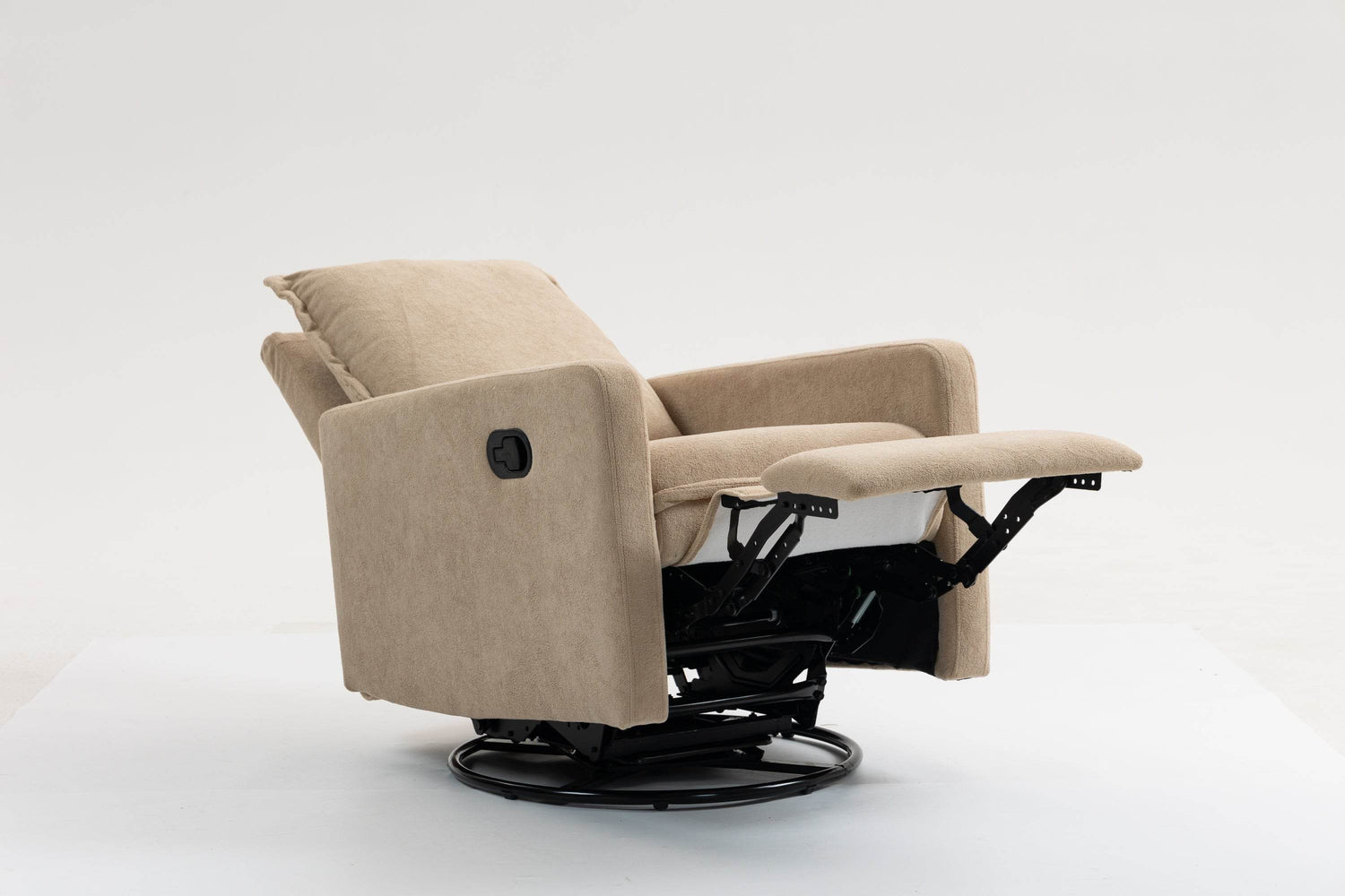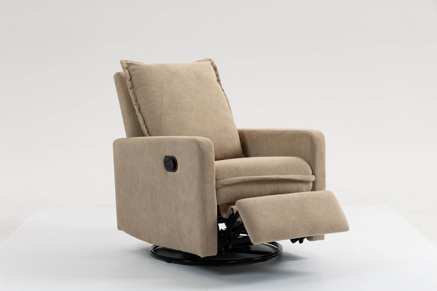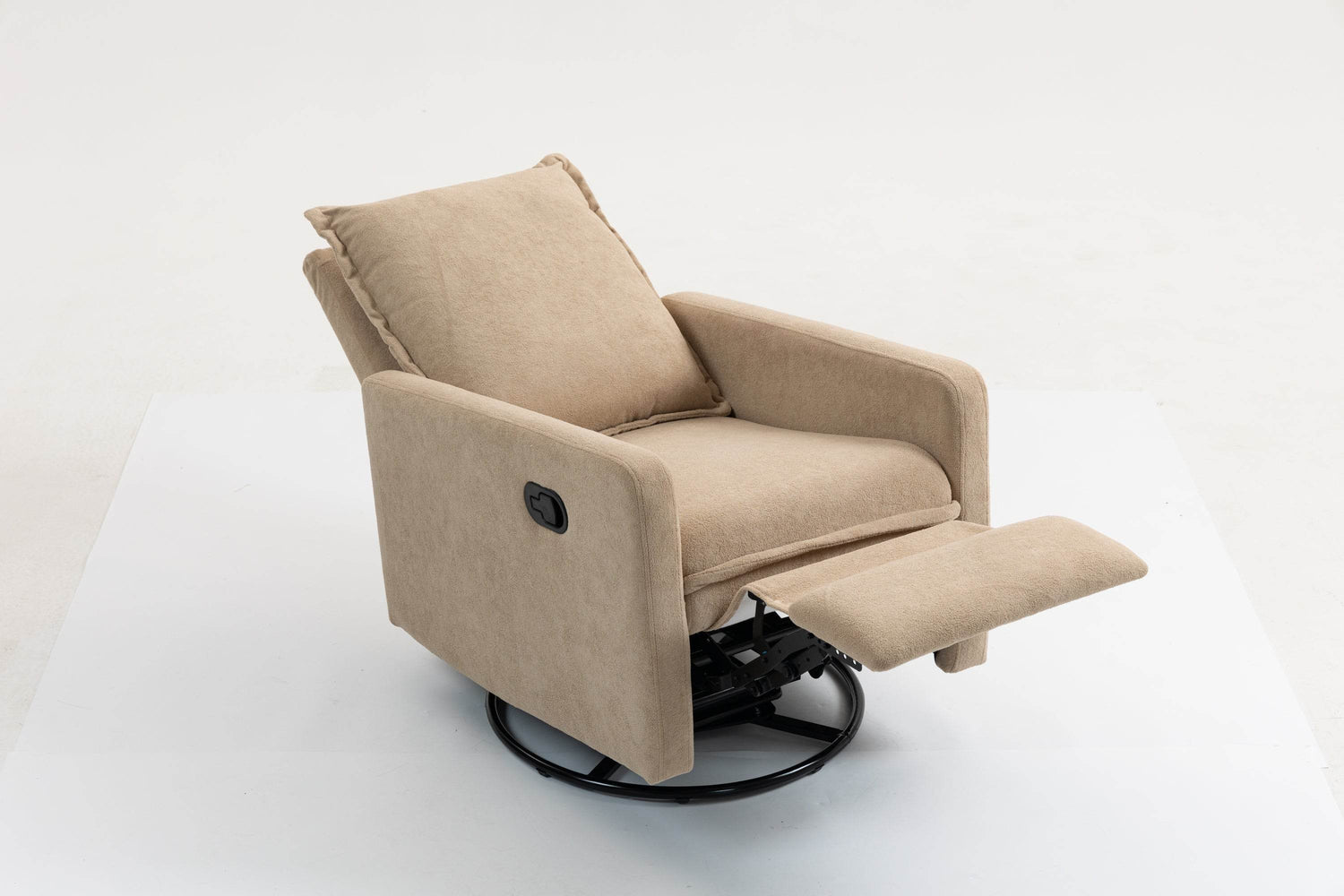 Relax in style with this camel-colored velvet armchair sofa, designed for both comfort and functionality. The soft velvet fabric offers a plush touch that invites you to unwind after a busy day, while the manual button design adds a classic aesthetic appeal. This chair rotates 360 degrees, providing versatile seating for your living room, bedroom, office, or entertainment area. Its strong design ensures durability, making it an ideal leisure chair that blends seamlessly with any décor. Easy to open with a manual buckle, this armchair sofa delivers both convenience and comfort. Elevate your relaxation and add a touch of elegance to your space today.