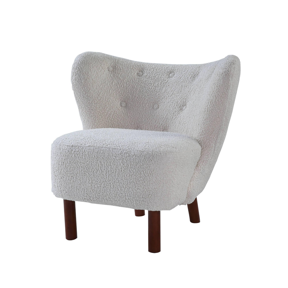 Omega Lifestyles white teddy sherpa accent chair combines cozy sherpa upholstery with plush foam cushioning and a classic wingback design, offering comfortable seating and durable wooden legs, ideal for adding warmth and style to any living space.