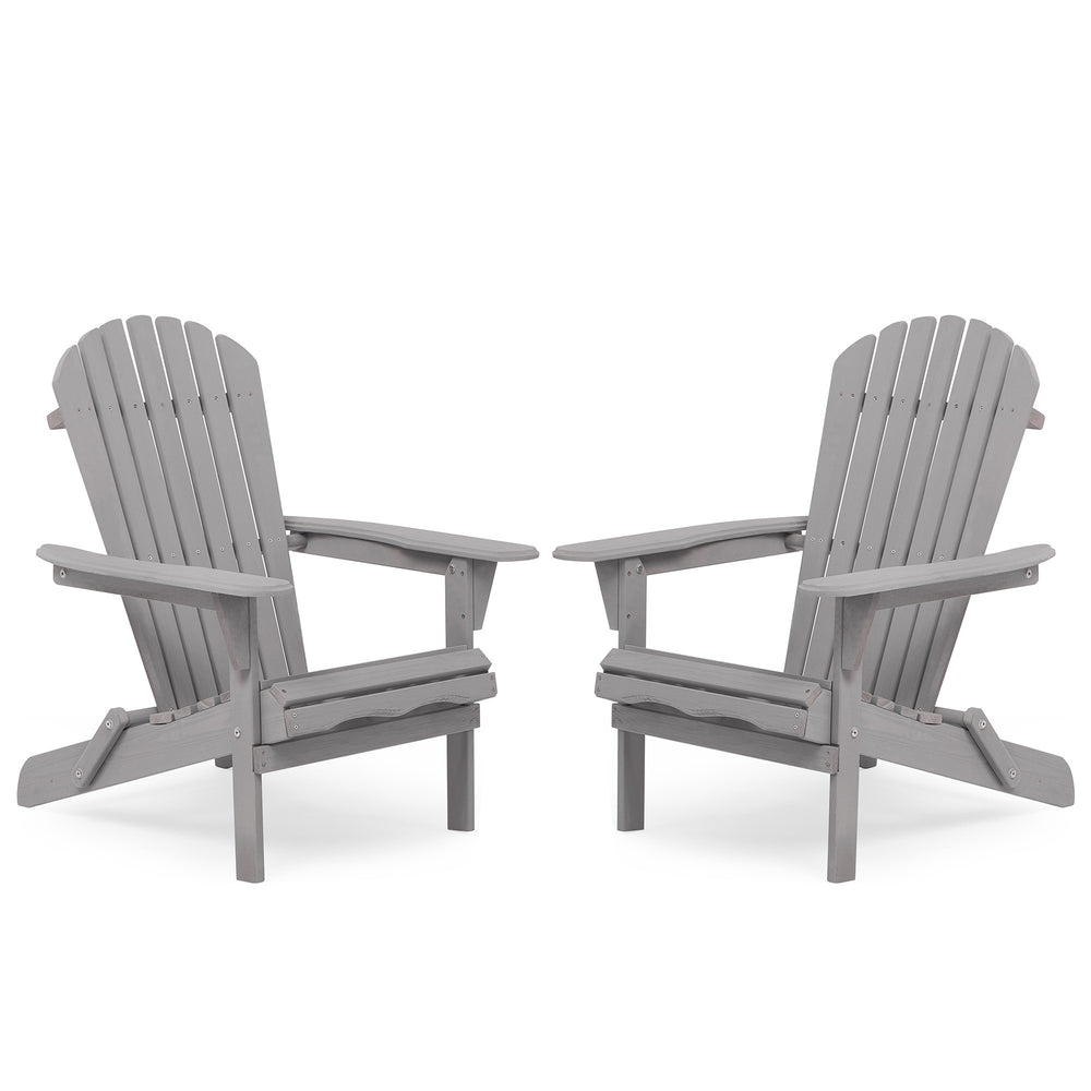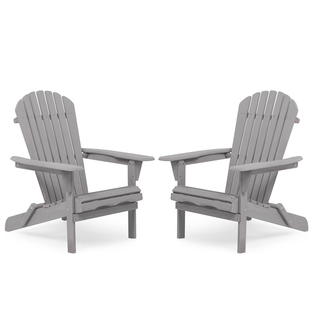Classic gray cedar wood Adirondack chair set of 2 features premium solid wood with brushed finish, foldable design for easy storage, and a spacious, comfortable seat with tall backrest and wide armrests. Ideal for patios, decks, and outdoor relaxation.