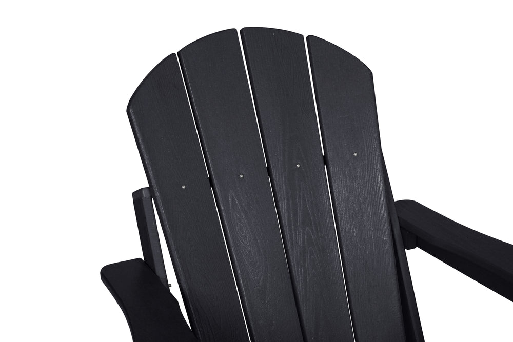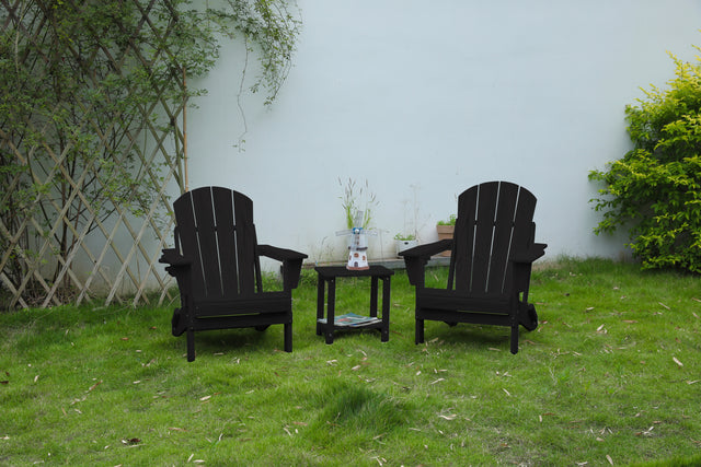 • Set Includes: 2 Folding Adirondack Chairs and 1 Side Table in classic black finish.