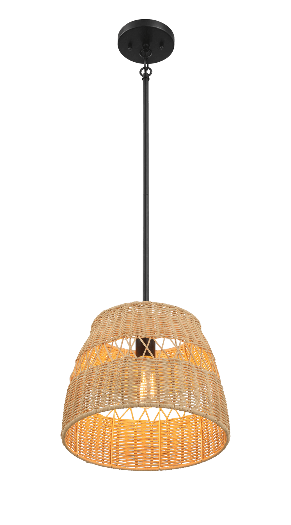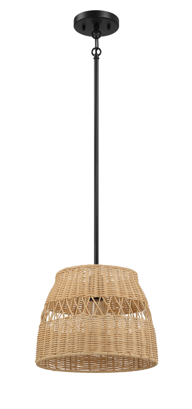Bring the warmth of farmhouse style into your living space with the Essence Single Lights Pendant. This ceiling light combines a sleek black painted metal base with a natural rattan shade, creating a perfect blend of rustic charm and modern design. The rattan shade’s woven texture invites a cozy, inviting glow that softly illuminates any room. Measuring 12 inches in length and width, with a height of 10.2 inches, this pendant is an ideal size to vertically complement your home décor without overwhelming your space. Designed to use a standard E26 incandescent bulb up to 100 watts, it offers flexible, bright lighting tailored to your needs. The understated elegance of black metal paired with natural materials makes this pendant a standout feature in kitchens, dining areas, or entryways. Elevate your farmhouse décor and create a welcoming ambiance today.
