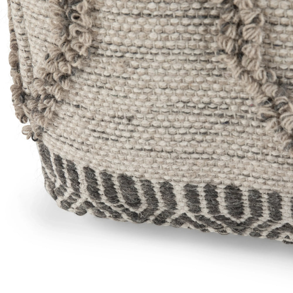 Add a stylish and functional accent to any room with the Sweeney Square Pouf. Handcrafted from woven wool and cotton in a soothing grey and natural palette, this pouf combines comfort and durability for everyday use. Filled with dense polystyrene beads, it maintains its supportive shape while offering a soft, comfortable surface to rest your feet or add extra seating. Its versatile square design features on-trend handloom details and a durable cotton bottom with a convenient zipper, making it easy to keep clean. Perfect for living rooms, bedrooms, or family spaces, this pouf delivers both aesthetic appeal and practical use. Fully assembled and lightweight at just over 5 pounds, it’s easy to move and fits seamlessly into your home. Elevate your relaxation and style today with this multi-functional accent piece.
