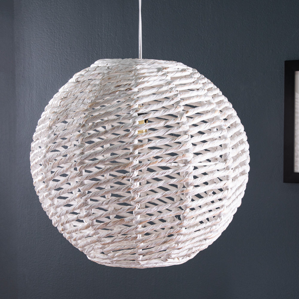 Woven Round White Washed Iron Pendant Shade