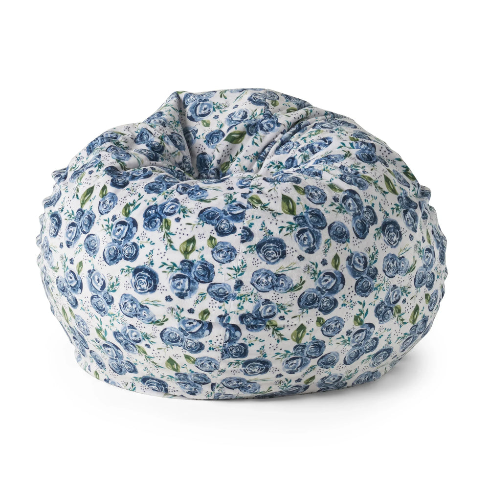 Experience Cozy Comfort with the Spring 3 Foot Rounded Bean Bag in Blue Rose Print