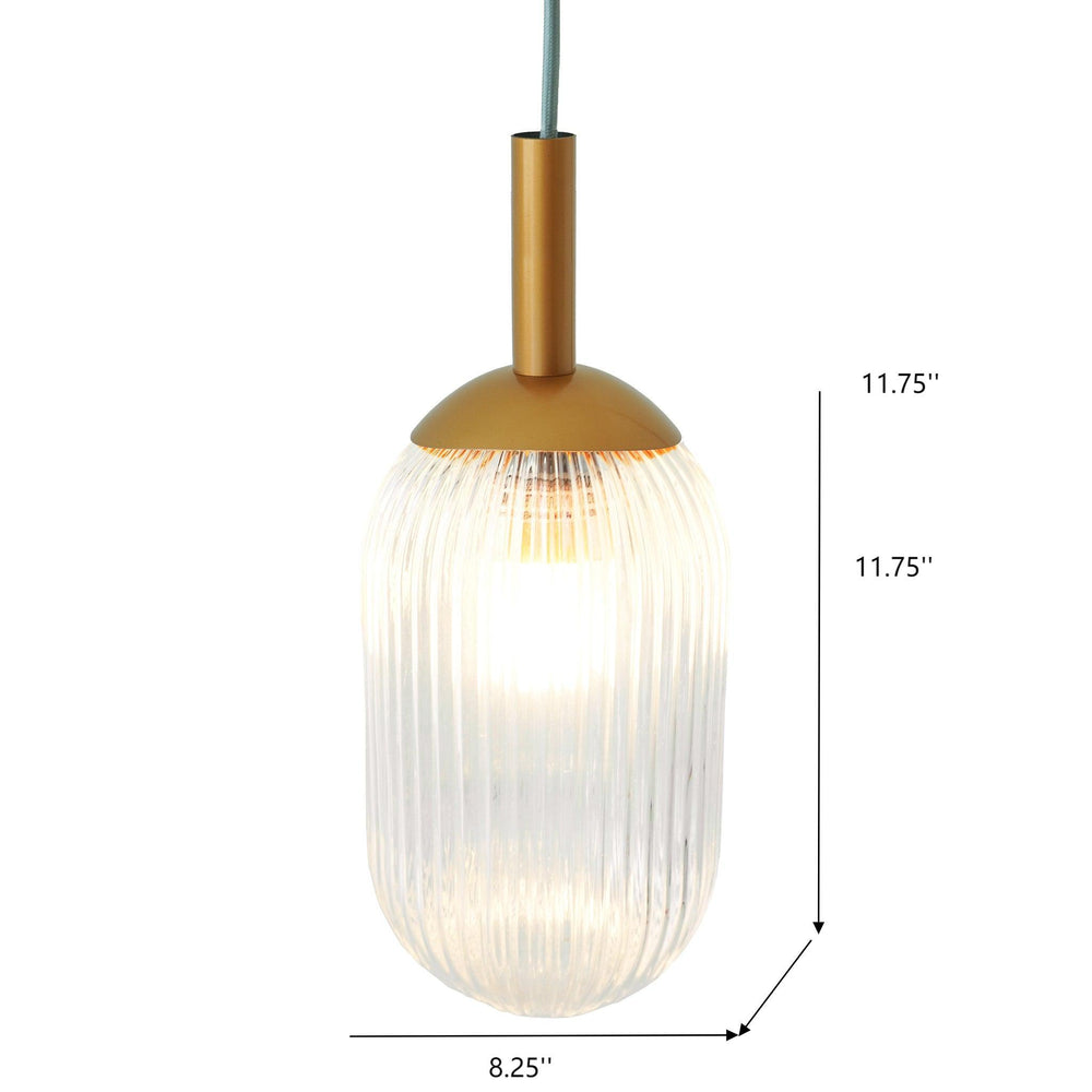 Bring mid-century elegance to any room with this stylish bronze pendant lamp featuring a clear, capsule-shaped ribbed glass shade. Its sophisticated design perfectly blends retro charm with modern appeal, creating a warm, inviting glow that enhances bedrooms, living rooms, dining areas, or kitchens. The adjustable hanging height lets you customize the lighting to suit your space and decor. Compatible with standard E26 bulbs up to 25W, this ceiling light offers versatile brightness options for relaxing evenings or lively gatherings. Crafted from durable metal and glass materials, it promises lasting beauty and performance. Upgrade your home lighting and enjoy a timeless statement piece that combines form and function. Brighten your space in style today.
