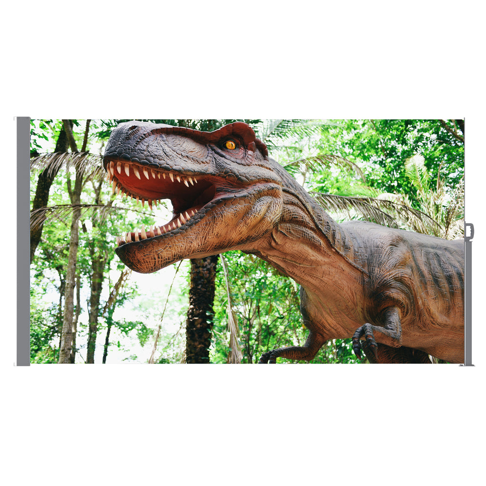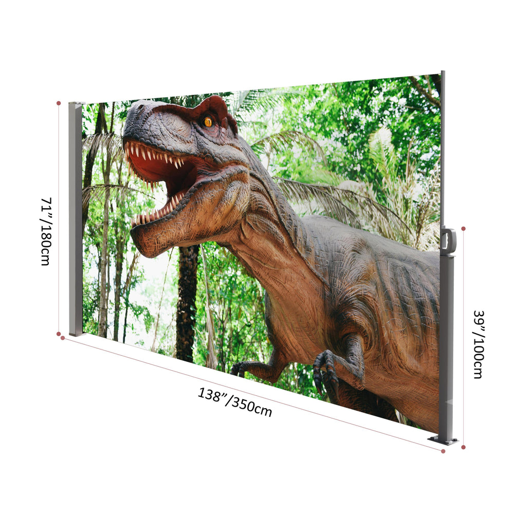 Enhance your garden, balcony, or poolside area with this retractable side awning screen that offers an ideal balance of protection and openness. Crafted from durable 270g PVC mesh fabric, it blocks dust, reduces harsh sunshine, and shields you from wind while maintaining a bright, breezy atmosphere thanks to its semi-transparent design. Adorned with weather-resistant UV-printed artwork, it adds a touch of charm and long-lasting color to your outdoor space. The galvanized steel frame with powder coating ensures premium strength and water resistance, making it a reliable solution for creating private, comfortable outdoor retreats. Easily installed on various surfaces like cement, concrete, or wood, this manually retractable screen is fully pre-assembled for hassle-free setup. Elevate your outdoor living today with this stylish and functional awning screen.