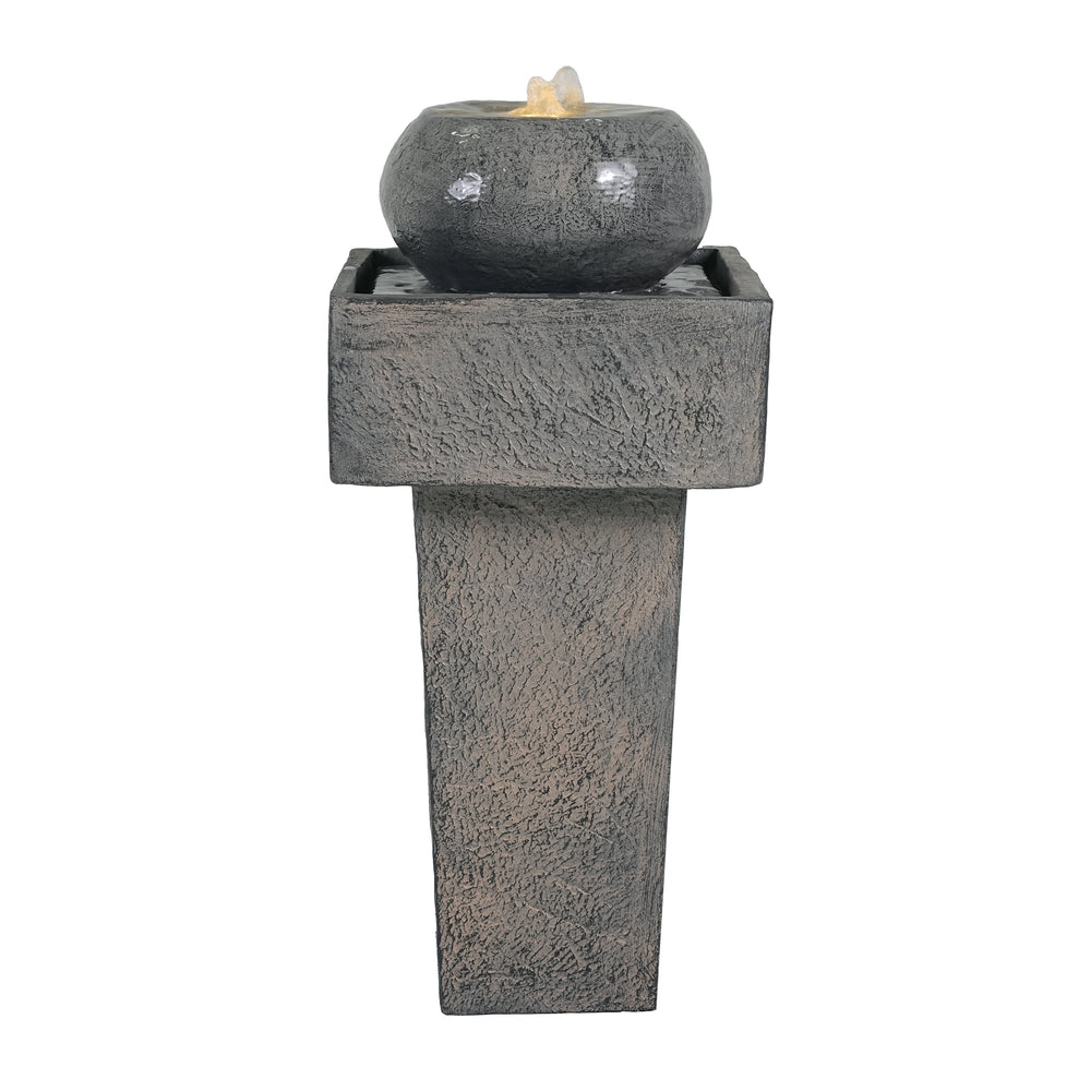 Enhance your patio, porch, or garden with this sleek 25.5-inch-tall (65 cm) minimalist concrete column fountain. Featuring a modern, simple column design with smooth, elegant lines, it seamlessly integrates with contemporary outdoor spaces to create a stylish centerpiece. Water flows evenly from the top, forming a tranquil, soothing curtain that brings calm and serenity to your environment. Embedded LED lighting illuminates the cascading water, creating enchanting sparkling effects both day and night. Crafted from durable concrete, this fountain resists weather, corrosion, and UV rays, ensuring long-lasting beauty. Easy to install and maintain with its quiet 2.2W circulating pump, it transforms your outdoor area into a peaceful retreat. Elevate your outdoor decor and unwind with the serene sound and soft glow of this modern water feature today.
