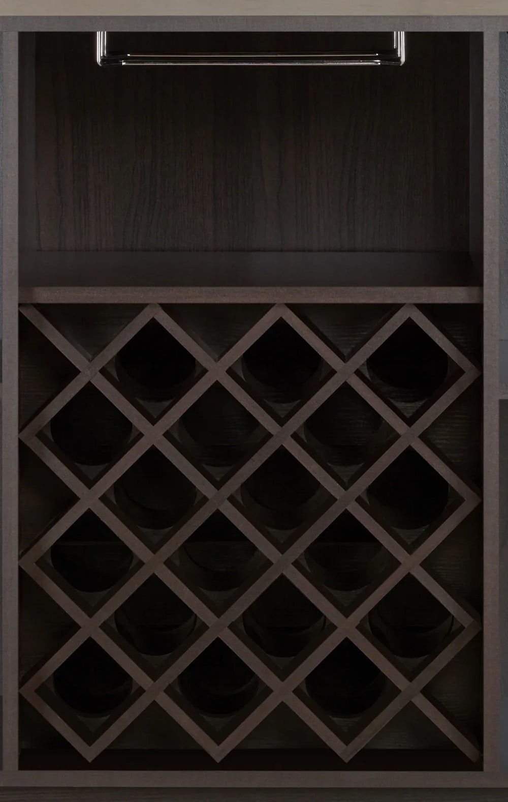 - Built-In Wine Rack: Securely holds up to 18 bottles for organized storage.