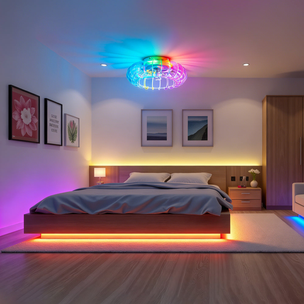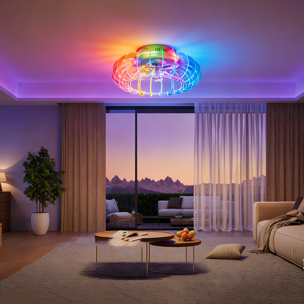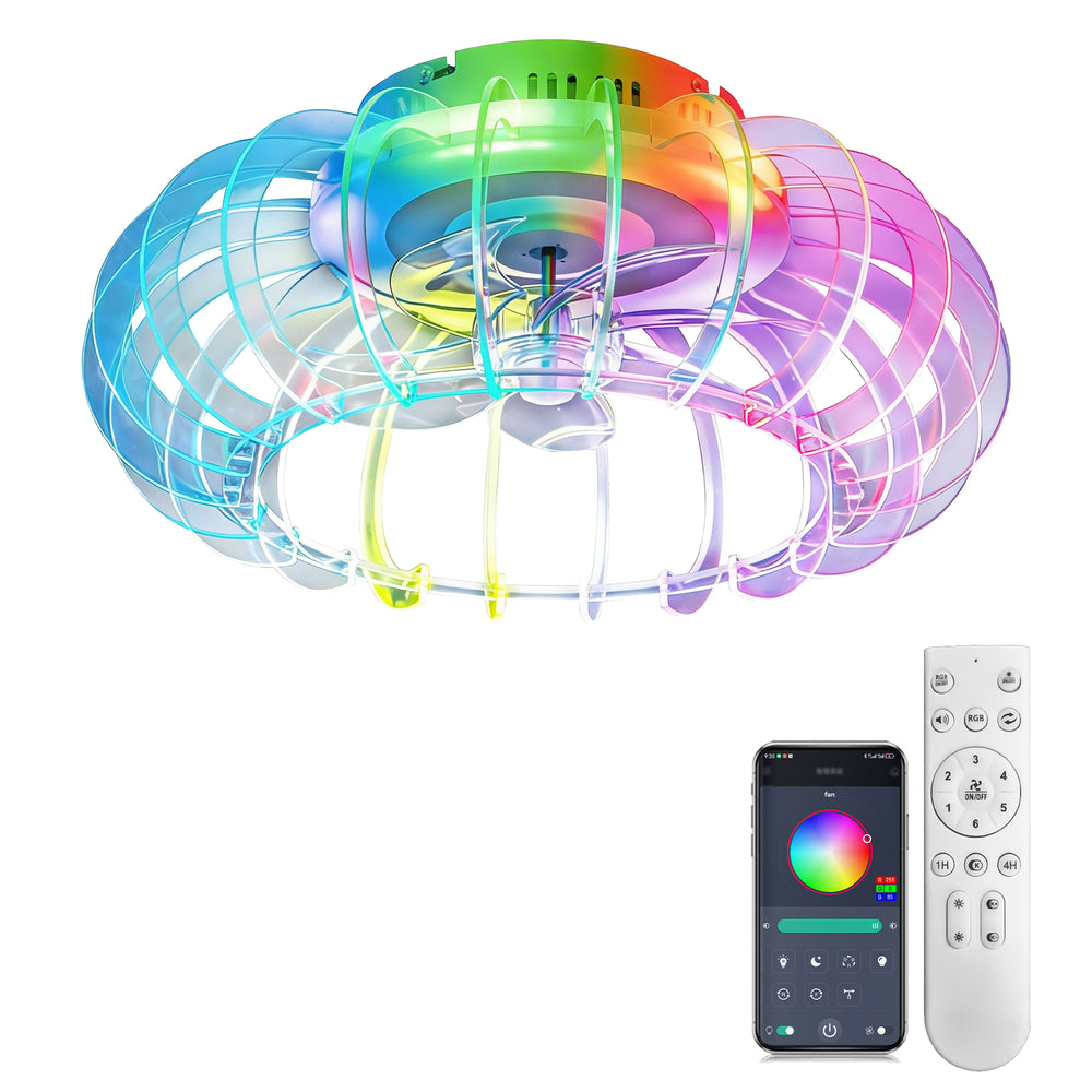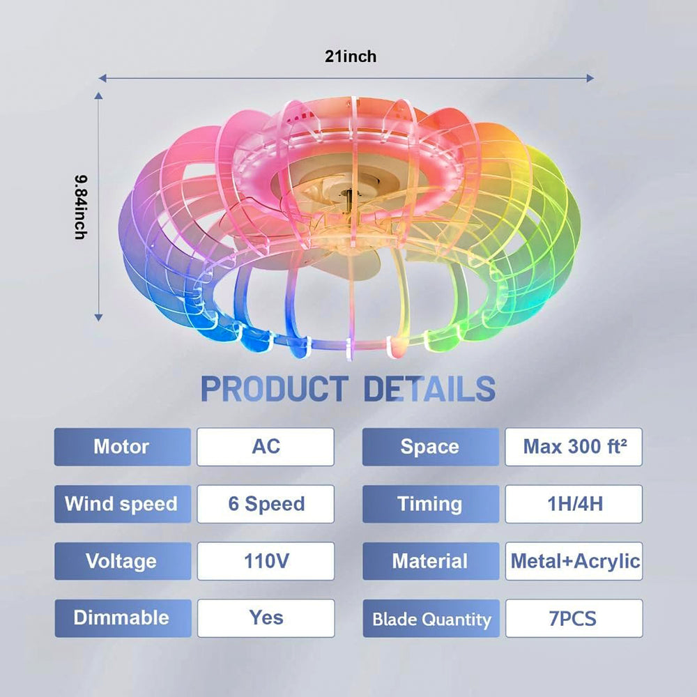 Enhance your living space with this sleek, contemporary ceiling fan featuring a bladeless design for quiet, safe airflow. Its low-profile build fits perfectly in bedrooms, kids' rooms, or party spaces, adding a stylish yet functional touch. Enjoy customizable ambiance with dimmable LED lighting that offers a wide color temperature range and vibrant RGB modes. The built-in Bluetooth speaker lets you wirelessly stream your favorite music without needing an app. Control fan speed, light brightness, and color with the included remote for effortless convenience. With six adjustable wind speeds and a reversible function, this fan adapts to both warm summers and cool winters by circulating air efficiently year-round. Its durable acrylic and PC materials ensure lasting performance while the memory function remembers your light settings for easy use every time. Elevate your room atmosphere and comfort today with this versatile ceiling fan.