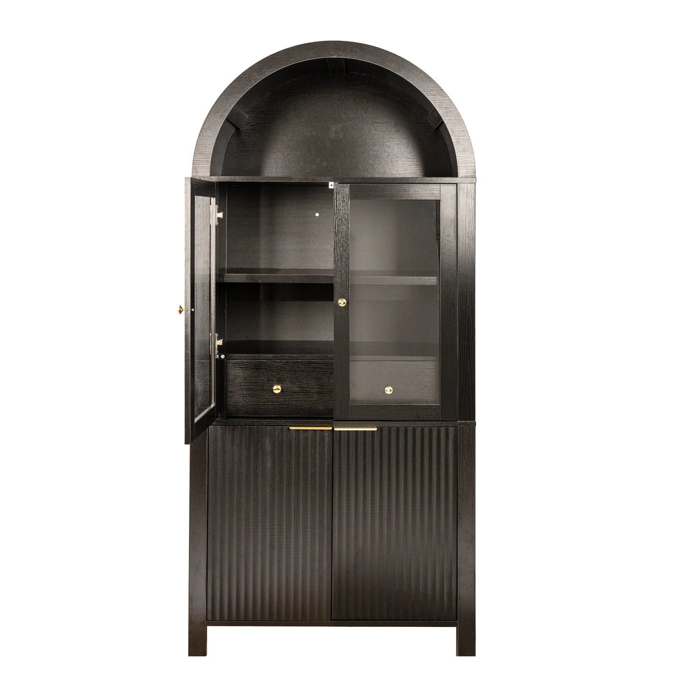 Modern Fluted Tall Arched Adjustable Shelf Pantry Cabinet