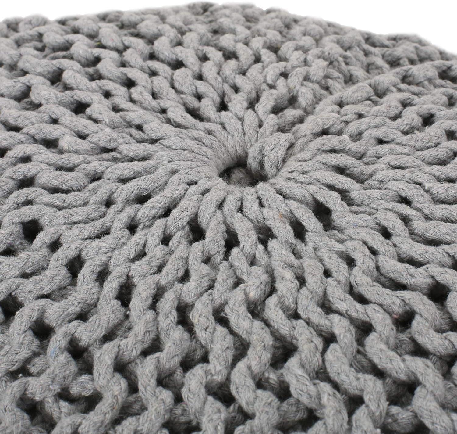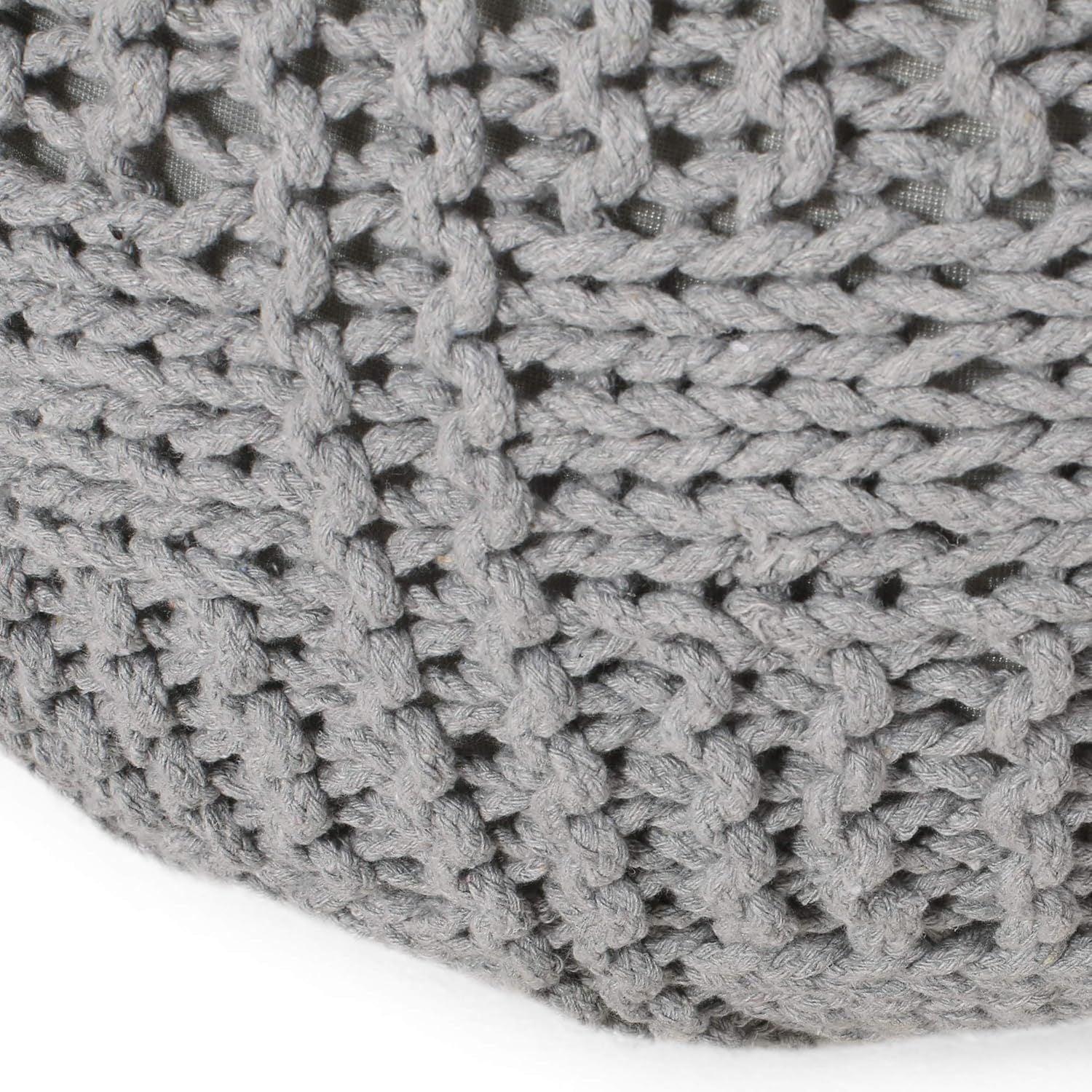 Omega Lifestyles knitted cotton pouf features a breathable, durable knit weave with modern grey design for cozy seating or footrest use. Sized at 20 x 20 inches, it enhances any living space with soft texture and requires no assembly.