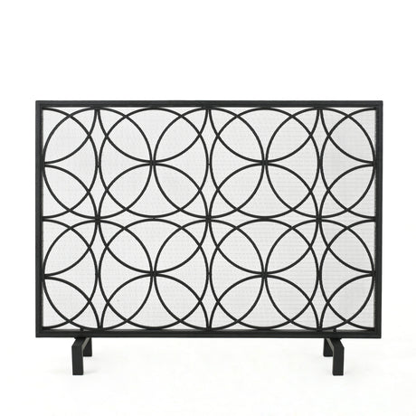 Single Panel Iron Fireplace Screen With Geometric Pattern