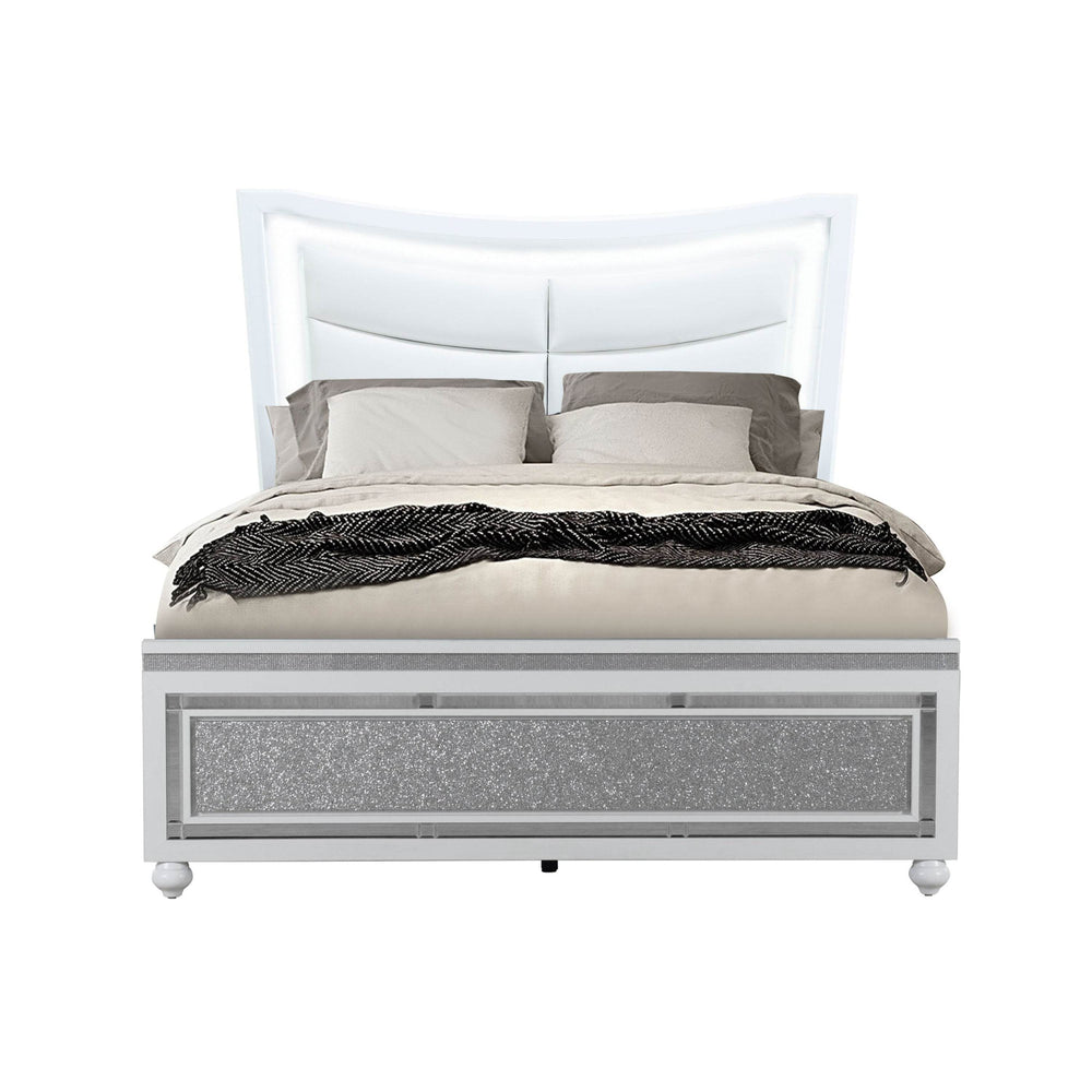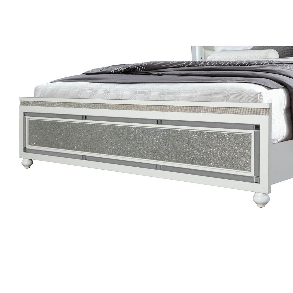 Contemporary Glam Panel Queen Bed Frame White Finish - Omega Lifestyles