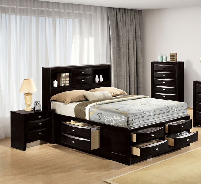 Full Size Contemporary Black Wood Bedroom Set with Drawers